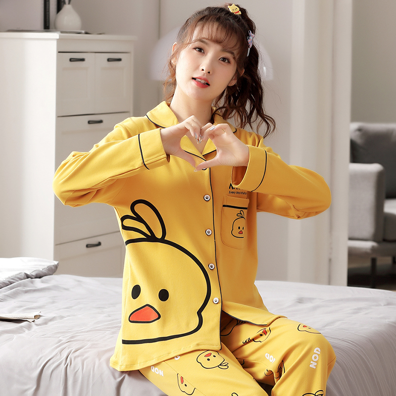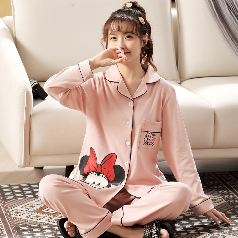 Han edition of pajamas lady pure cotton width width fat MM increased weight cartoon long sleeve home suit Altman
