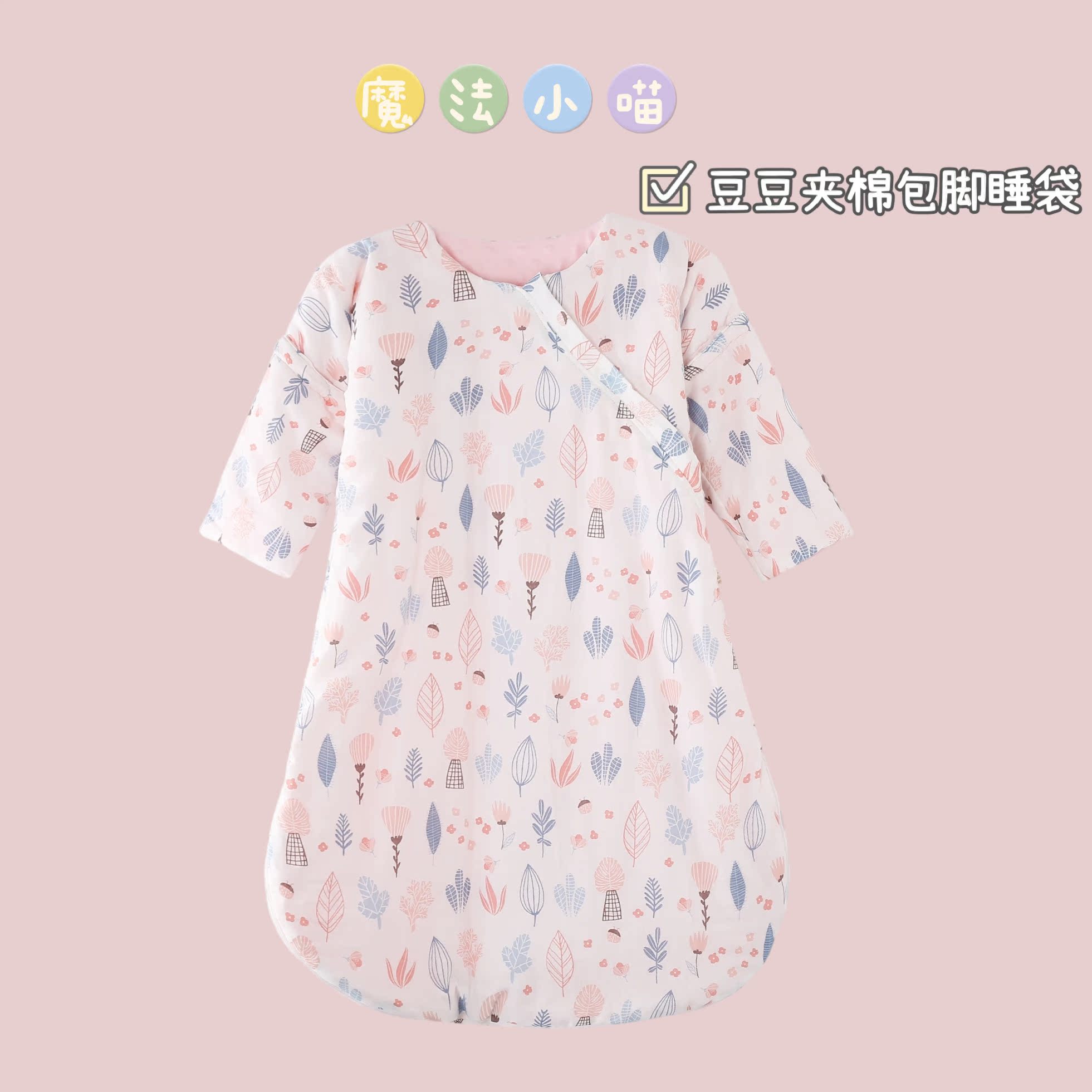 MMKIDS magic little meow newborn baby baby anti-kick quilting bean velvet cotton thickened one-piece foot sleeping bag