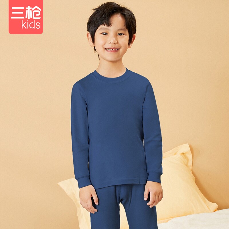 ()Three Guns Children's Underwear Set Antibacterial Class A Boys and Girls Warm Cotton Underwear Home Pajamas