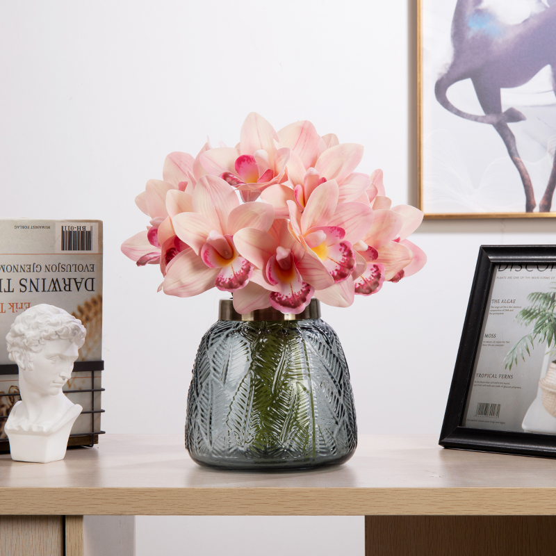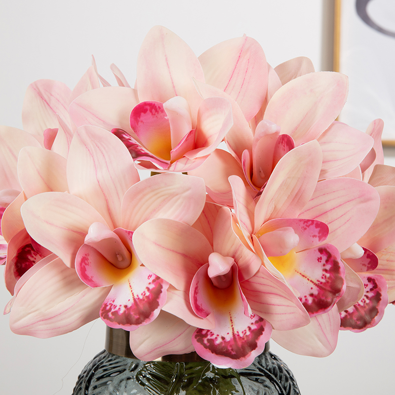 Small bunch of orchids simulation Cymbidium fake flower decoration combination set Nordic living room dining table coffee table floral decoration