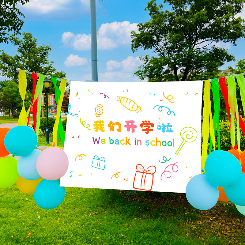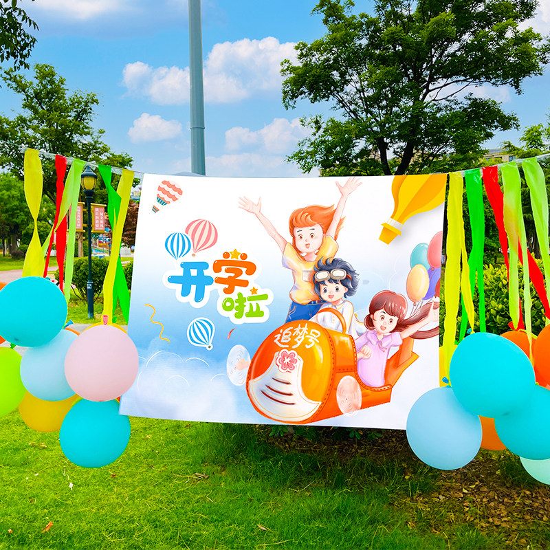 Kindergarten Elementary School Opening Ceremony atmosphere decoration celebrate props creative cartoon balloon dress background