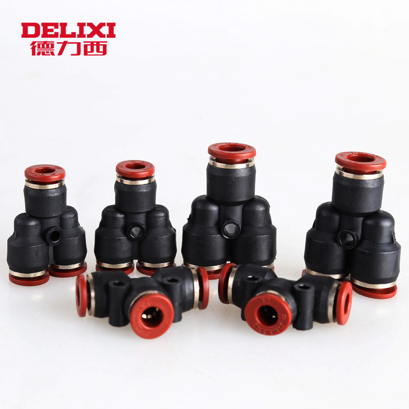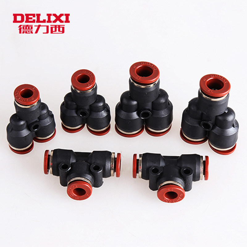 Delixi pneumatic PU pipe PE PY PY fast plug PW three-way joint variable PEG6-4 10-8 16-12