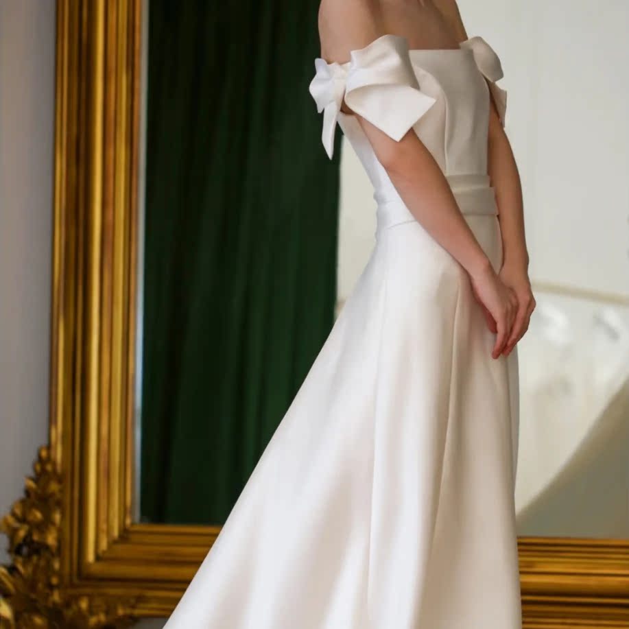 Fan-style light wedding dress 2022 new lined-shoulder outdoor lawn minimalist satin finish with a small gown for the summer