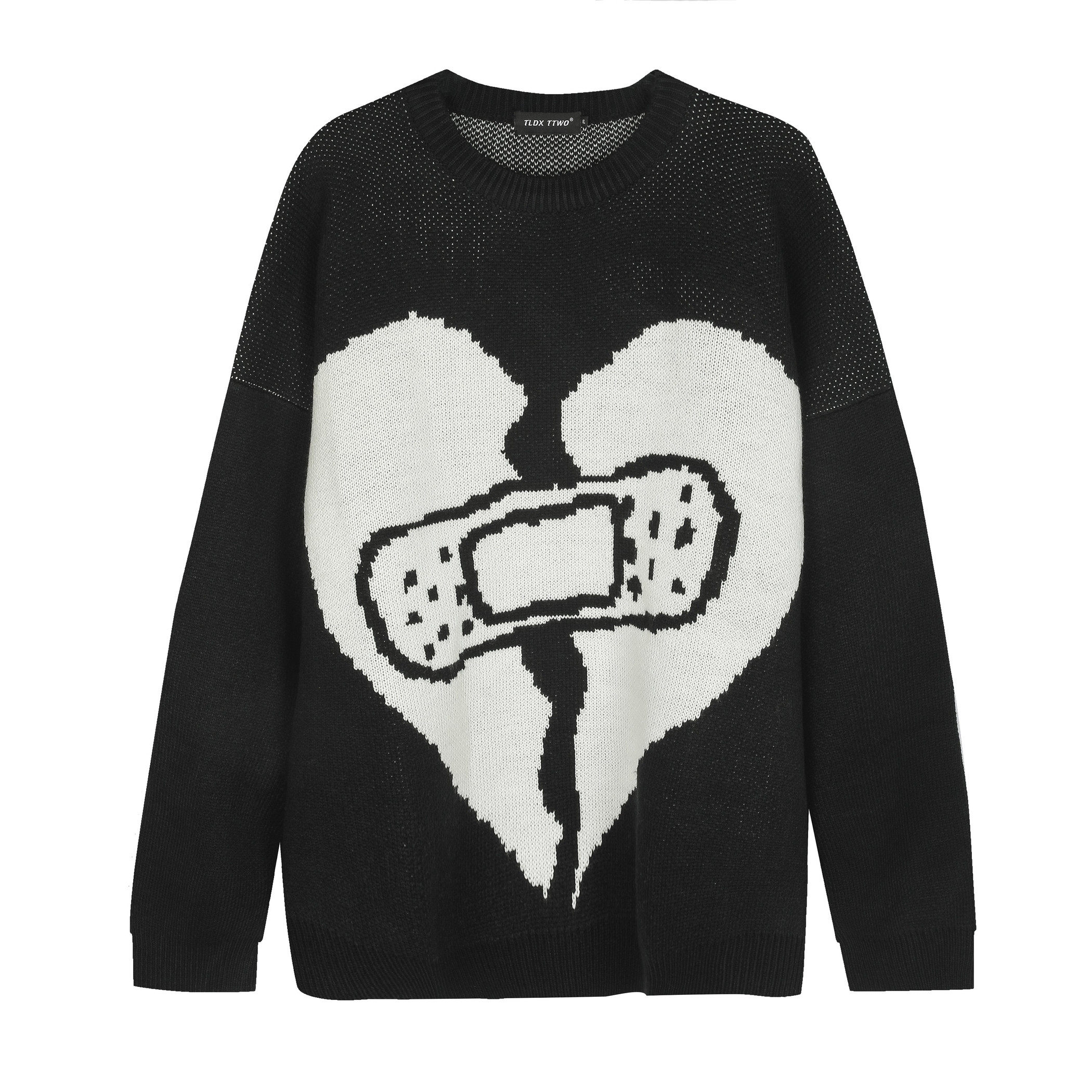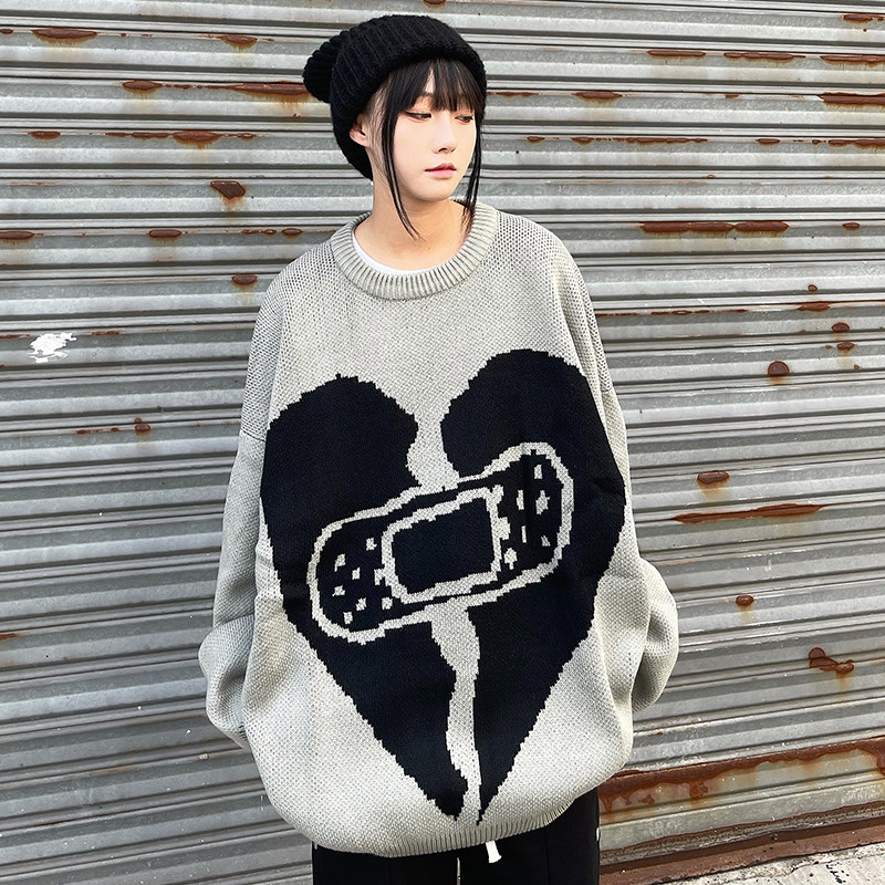 Beating Strange Country Tide Bursting with Loving Mending Formula Sweater Women Fall New Lovers Loose Oversize Knitted Jacket