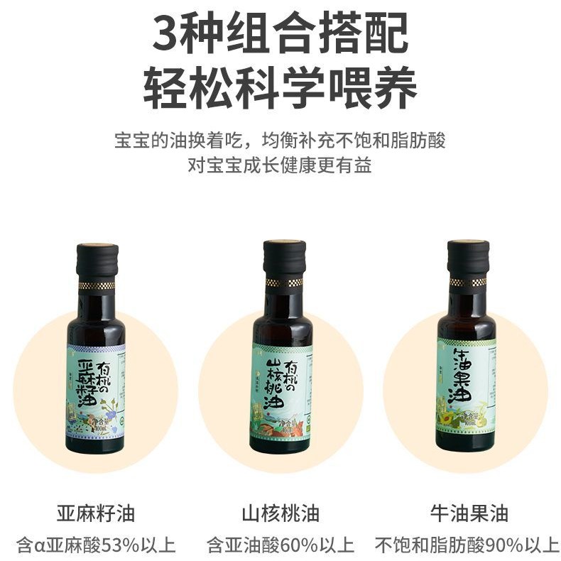 3 bottles of walnut oil linseed oil 125ml hot fried oil 300ml 2 bottles (walnut oil avocado oil) 3 bottles (walnut avocado linseed) 3 bottles of avocado oil 125ml
