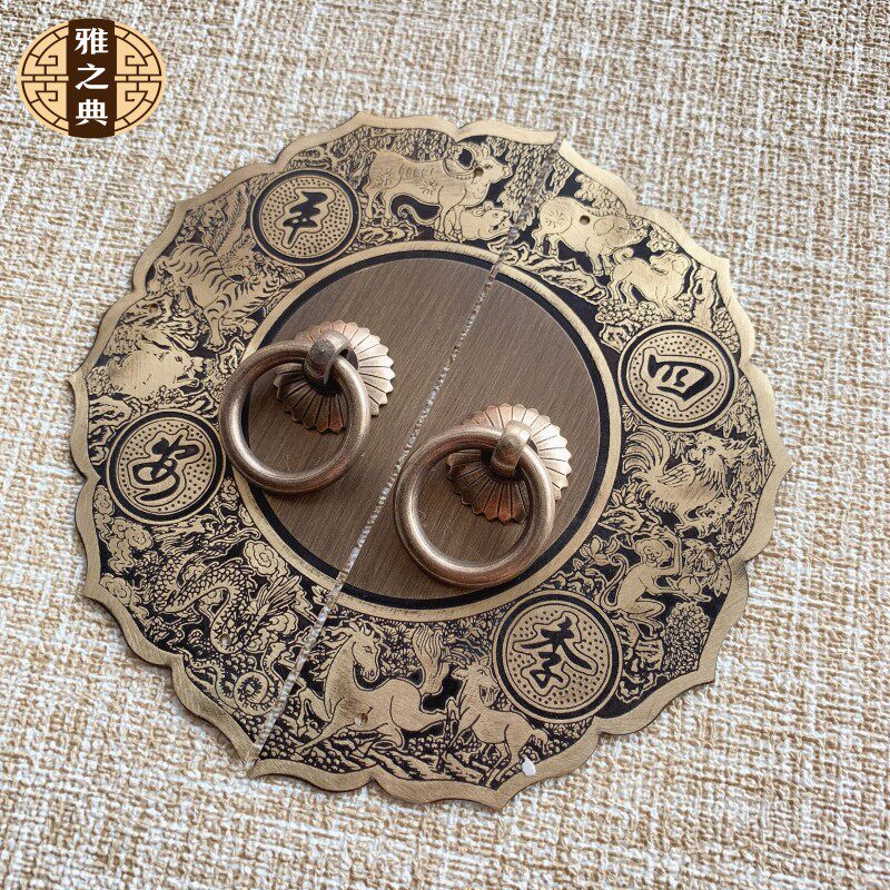 Chinese imitation antique solid wood integral cabinet wardrobe door furniture copper handle imitation ancient bookcase round single-hole pure copper old handle