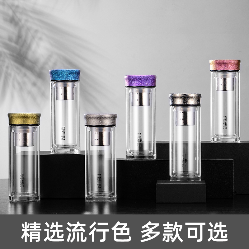 This read pure titanium glass insulated cup double insulation anti-fall liner female upscale tea water separation vacuum titanium cup