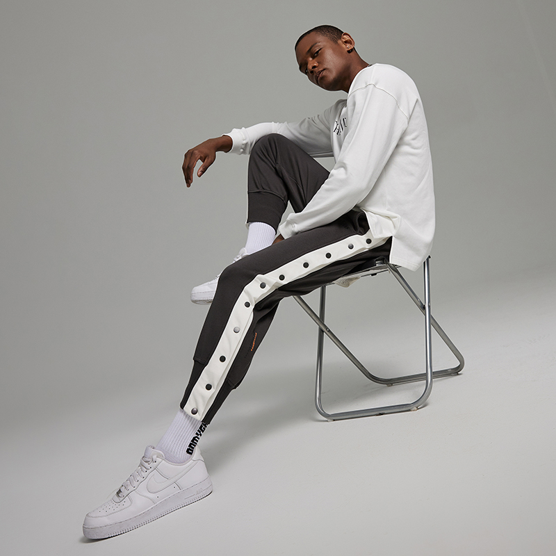 omg boomer loose beam foot casual knitted swepants personality fitness long pants side row buttoned pants men sports pants