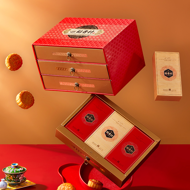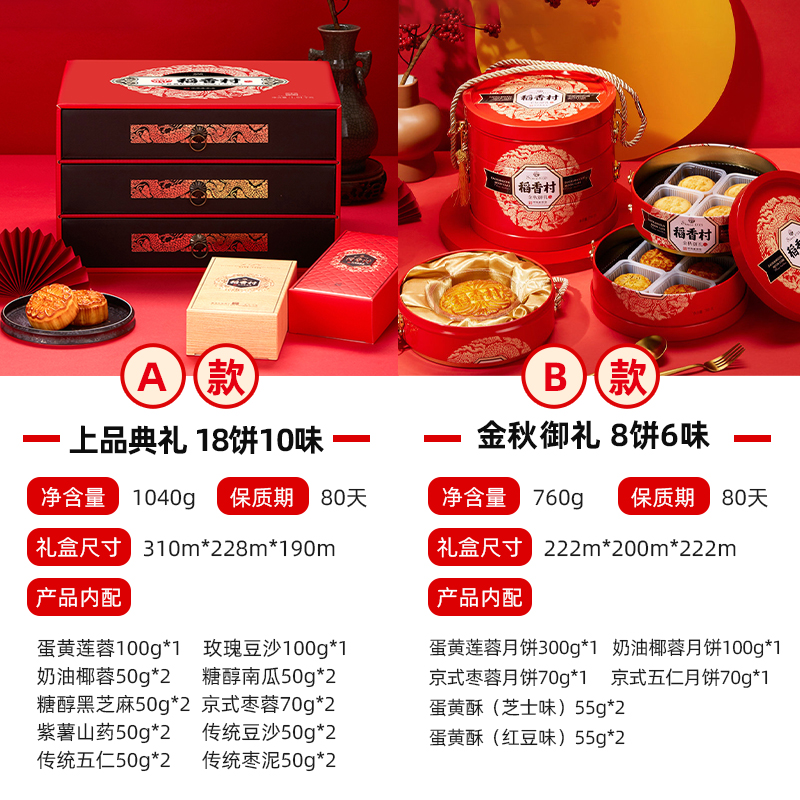 A paragraph (18 cake 10 taste) on the three floors luxury mooncake gift box delivery bag B paragraph (8 cake 6 taste) Gold and Autumn Courtesy Three Layers Iron Jar Mooncake Gift Box Boutique Tirope C (10 pie
