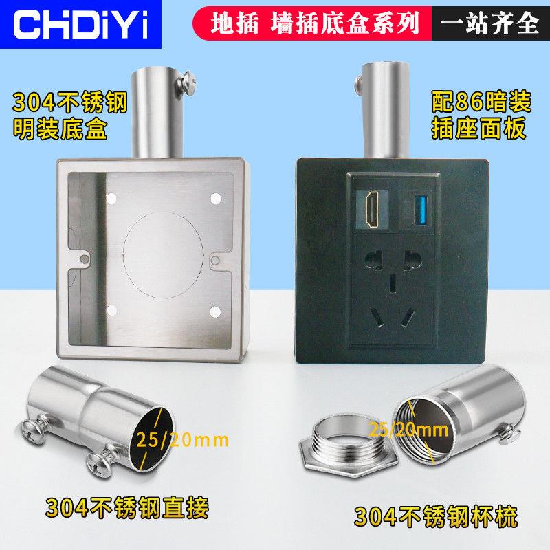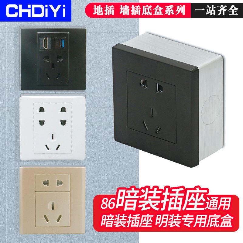 New product 304 stainless steel 86 type clear case Universal socket Ming concealed base wall switch panel bottom junction box