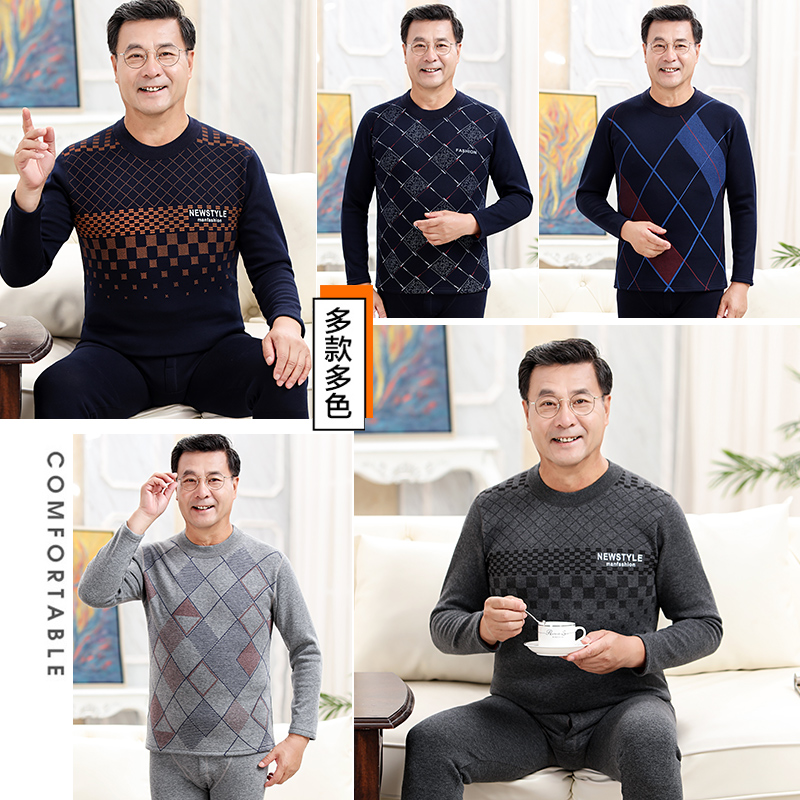 Dad Fever Coat Men Plus Suede Thickening Middle Aged Seniors Autumn Clothes Sanitary Pants Pure Cotton Suit Beating Undercotton Sweatshirt YD