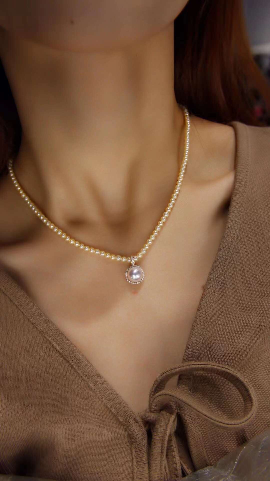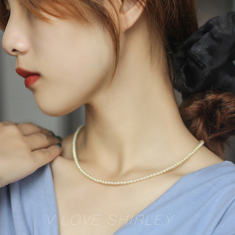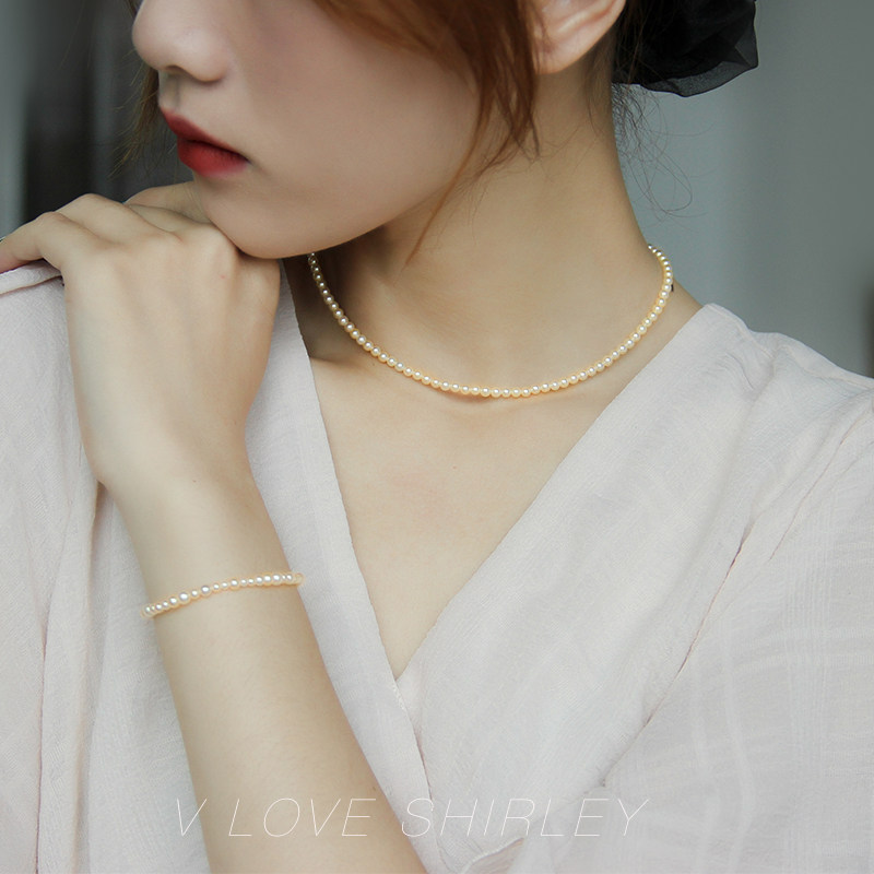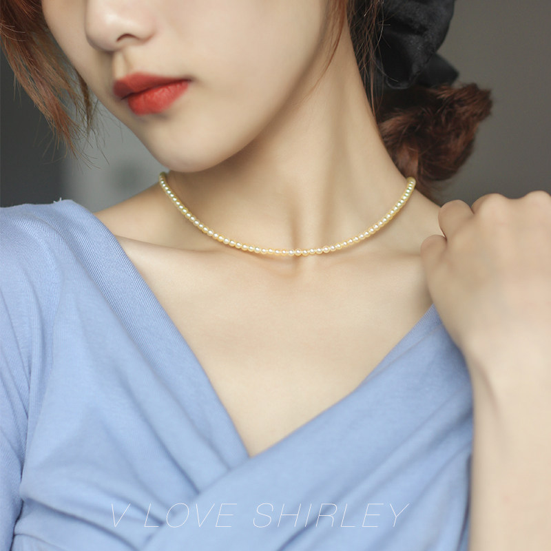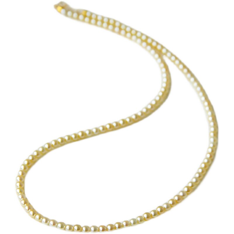 "Plume Chocker" Imported Akoya Seawater Pearl Necklace Champagne Gold Natural Color 18K Gold Lock Bone Chain