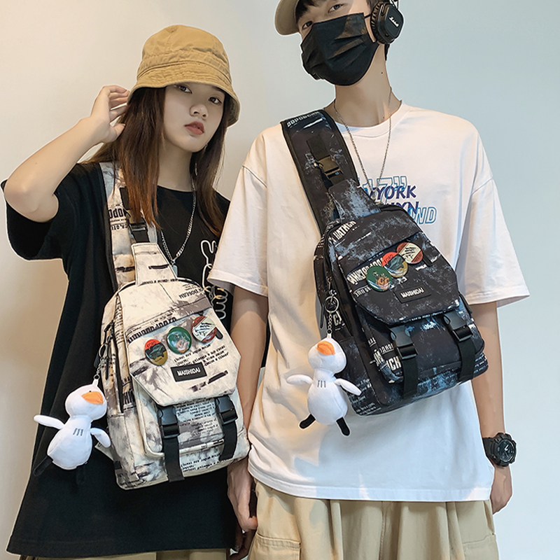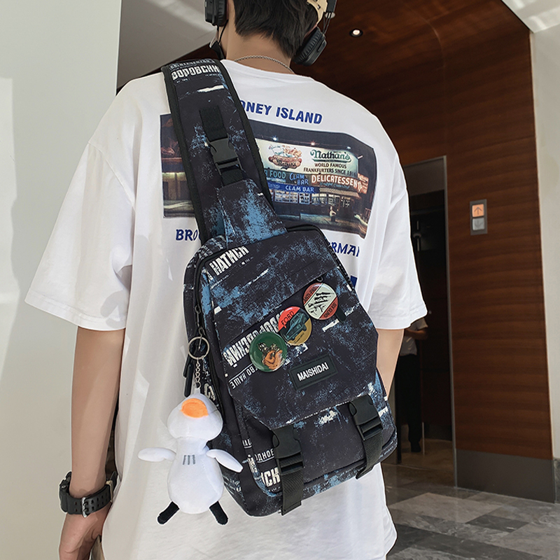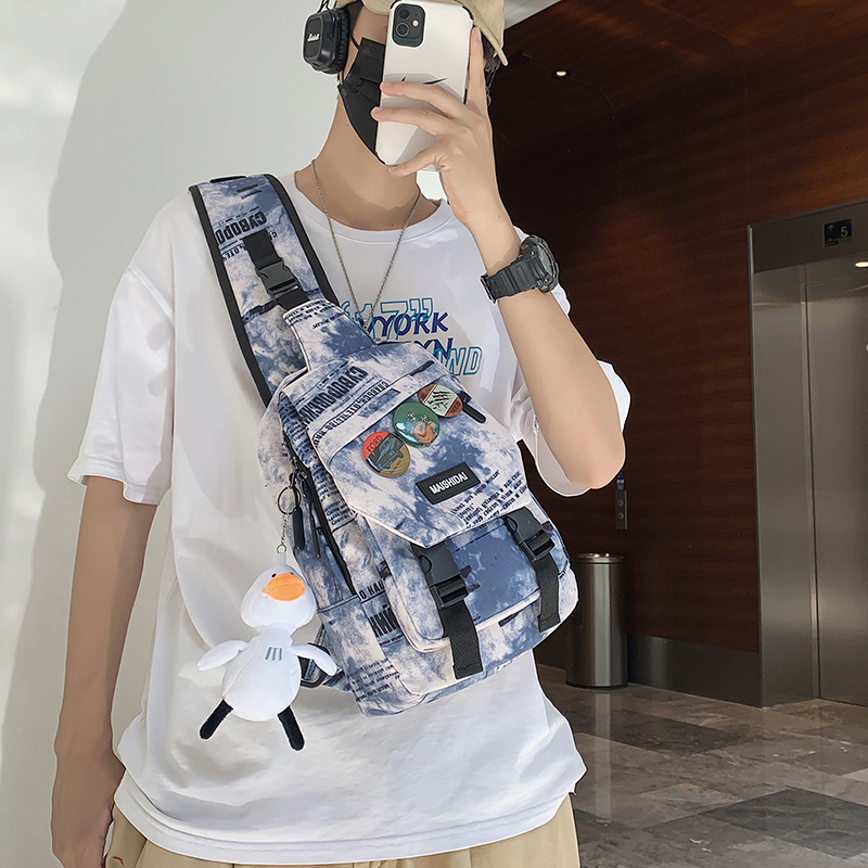 National Tide Chest Bag Slanted Satchel for male Chauded students Movement Inclined Shoulder Bag Large Capacity Single Shoulder Mini-Shoulder Bag Casual Diagonal Shoulder Bag