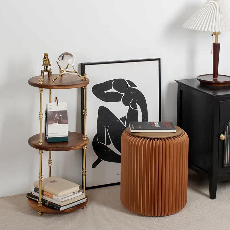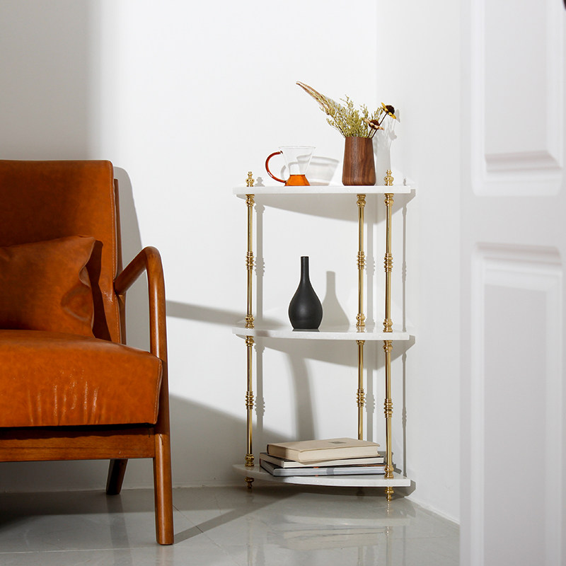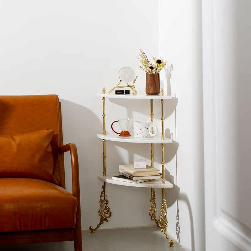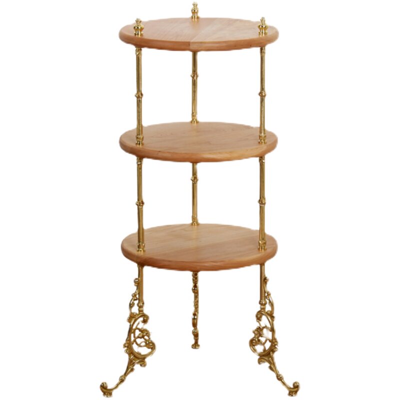 Retro Solid Wood Brass Shelf Light Lavish Nordic Living Room Triple Side Several Medieval Ground Flower Shelf Bookshelf-Like Inter-Board Room
