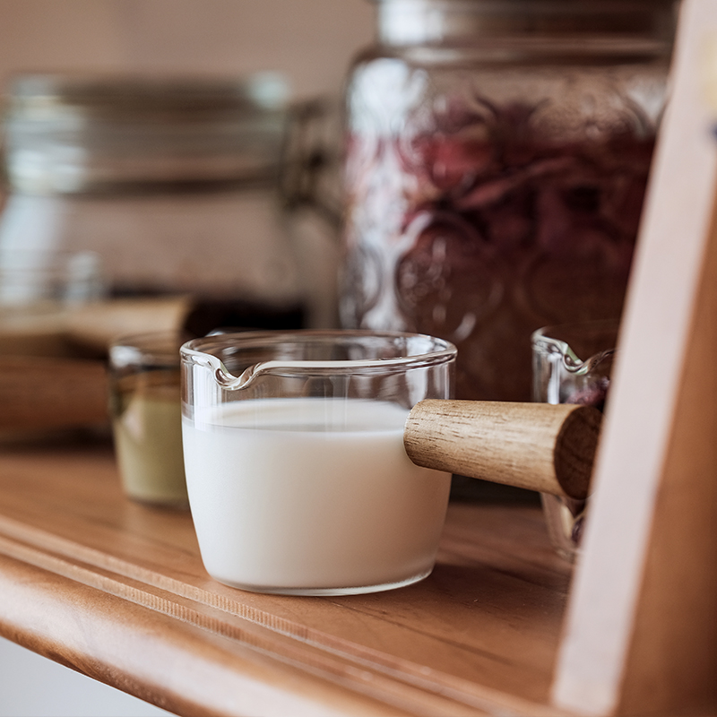 Morden Housewife Glass Small Milk Flush Milk Jug Concentrated Coffee Scale Calorie Cup Coffee Add Milk Cup Wood Handle Small Milk Jars-Taobao