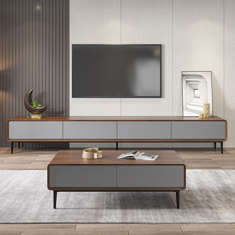 Nordic TV cabinet coffee table combination modern minimalist small and medium-sized living room minimalist TV cabinet floor cabinet 2 meters