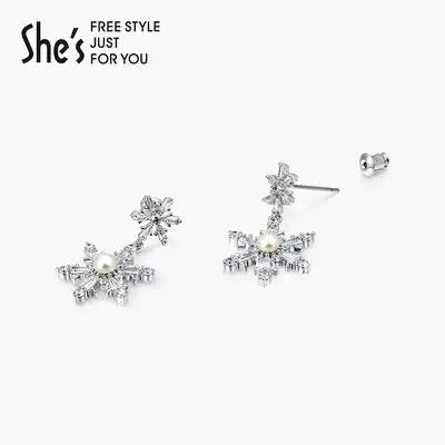 Shees Qianzi Ice and Snow Secret Snow Snowflake Freshwater Pearl Aunbone Clip Female Ear Earring Advanced Ear
