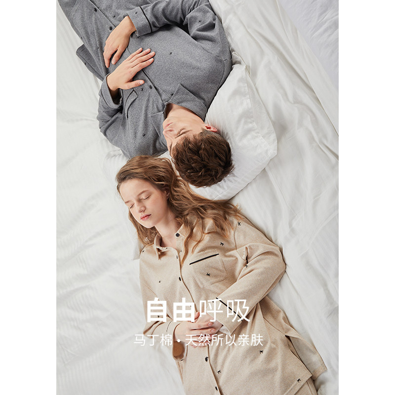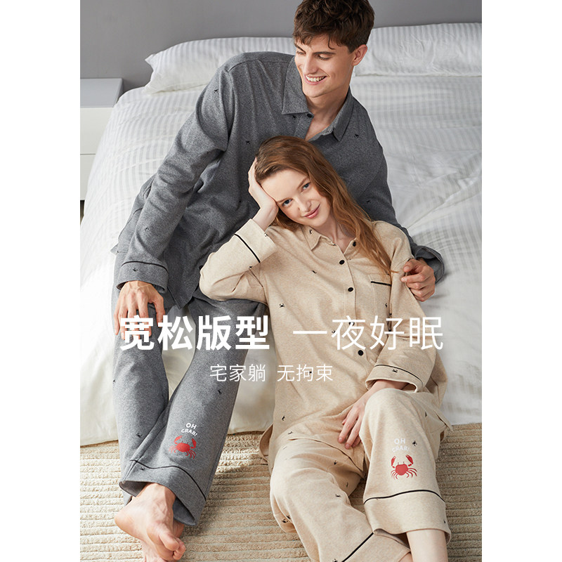 Fenten (Martin Cotton) Couple Pajamas Women Spring and Autumn Long Sleeve Pants Loose Casual Men Home Clothes Autumn and Winter Set