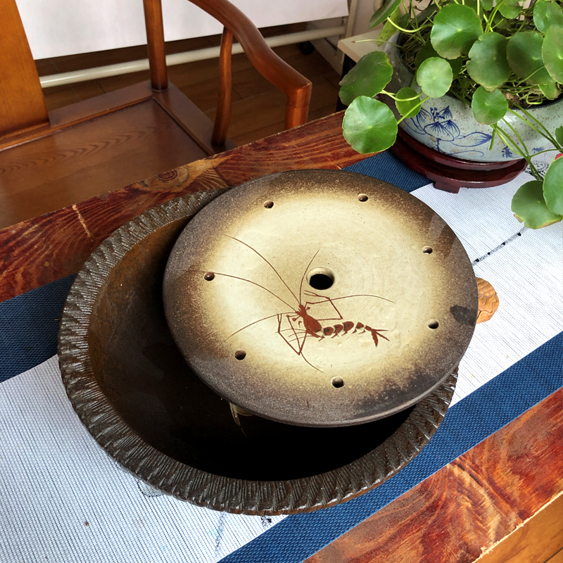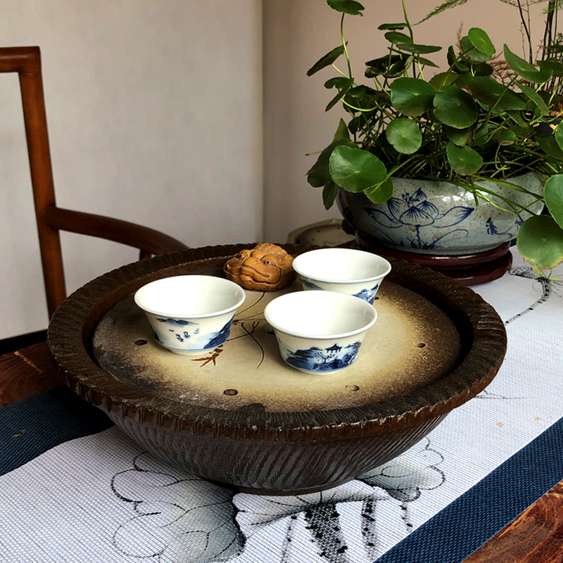 Chaoshan Ceramic Kung fu tea tray Dried Bubble Pan Round Lotus Tea Nursery Water Storage Chinese Tea Pan Tea Sea Full Swing Boat