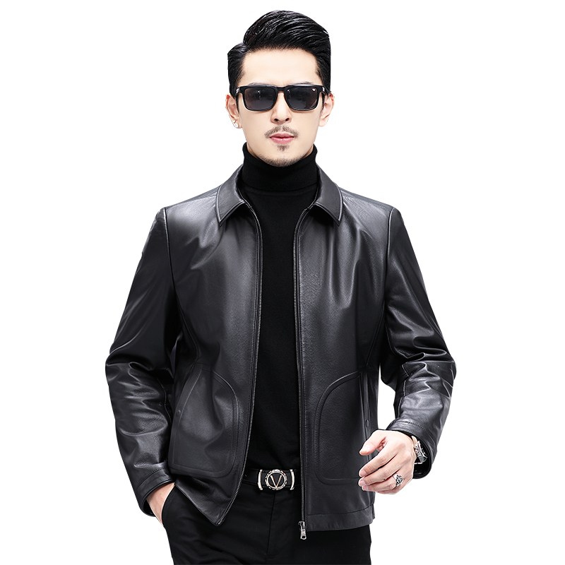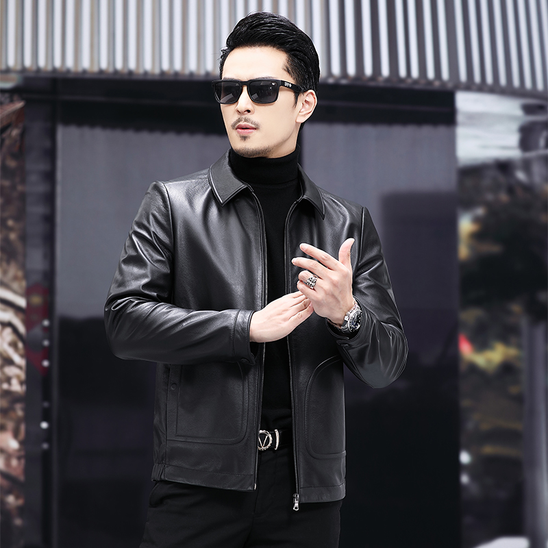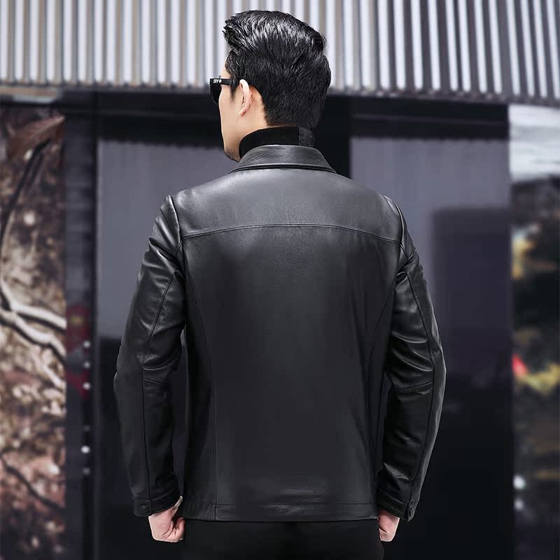 Henning Genuine Leather Leather Clothing Male short Overturning Head Layer Pure Cow Leather Jacket Men's Spring Autumn Thin middle aged casual jacket