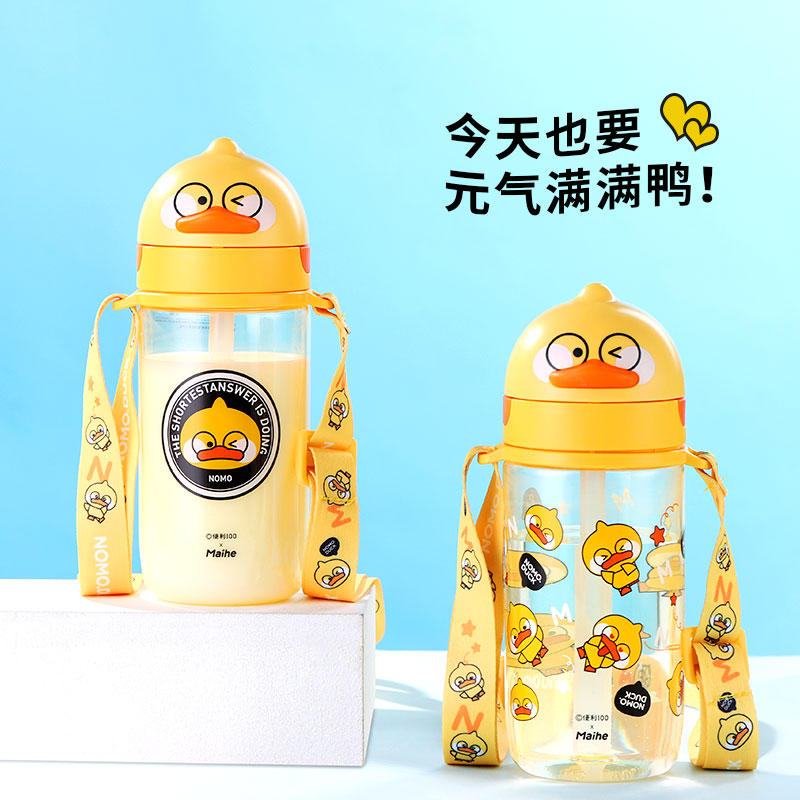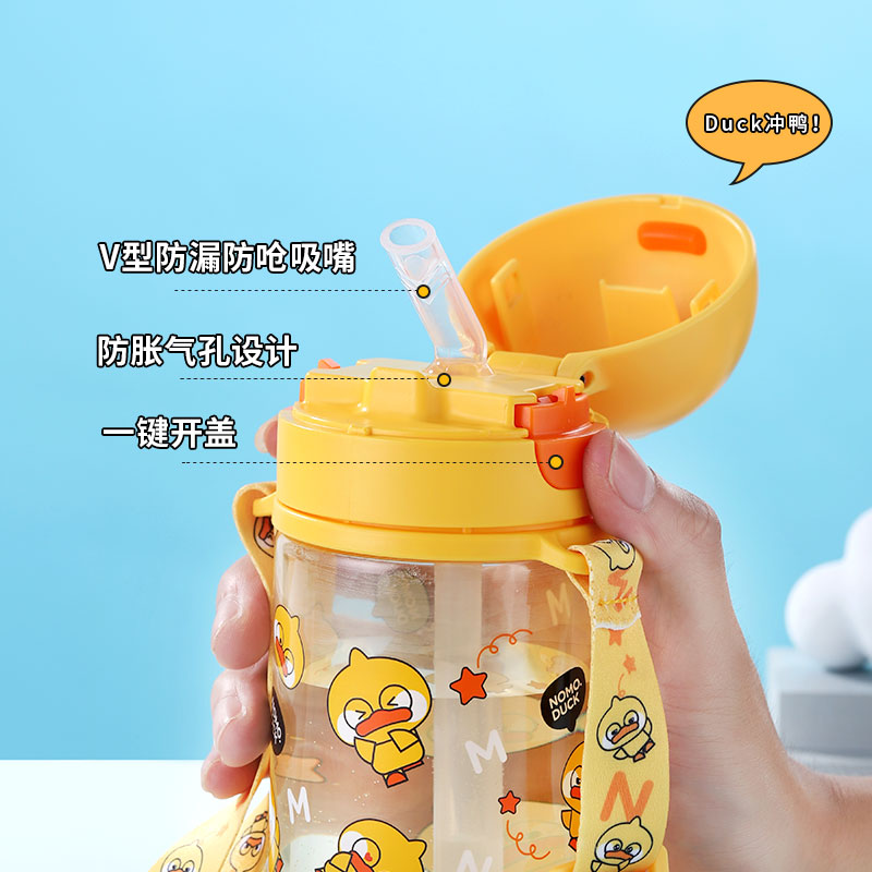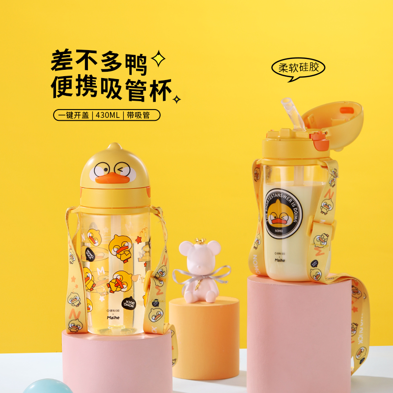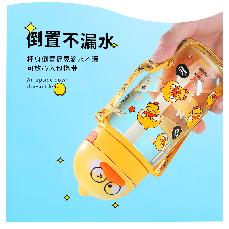 Little yellow duck water cup summer kindergarten will carry straw cute children's cup special anti-fall kettle for school