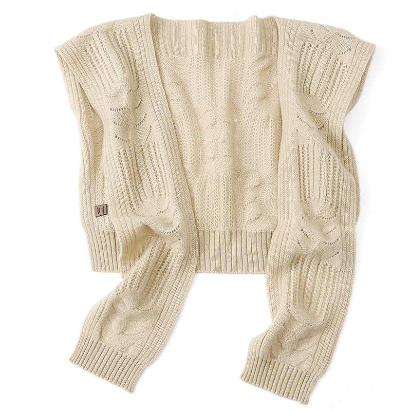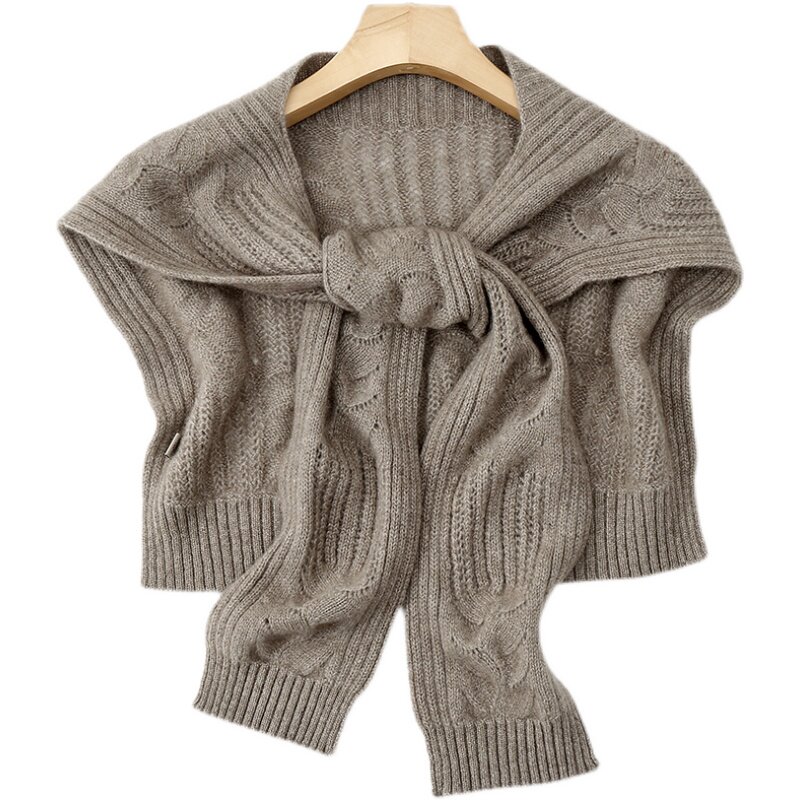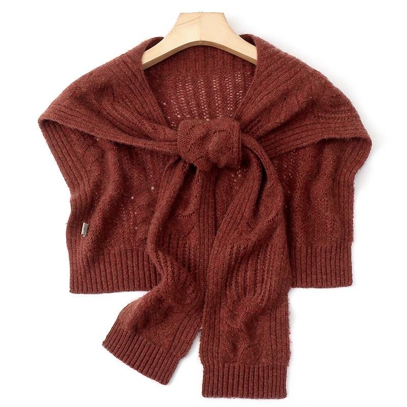 100% pure cashmere wool knitted hollow shawl women's outer wear summer shoulders spring and autumn knotted solid color high-end scarf