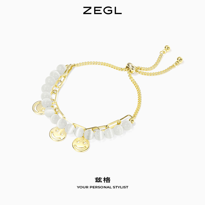 ZEGL smiley opal double-layer bracelet girl ins niche design light luxury 2021 new simple hand decoration
