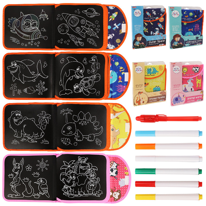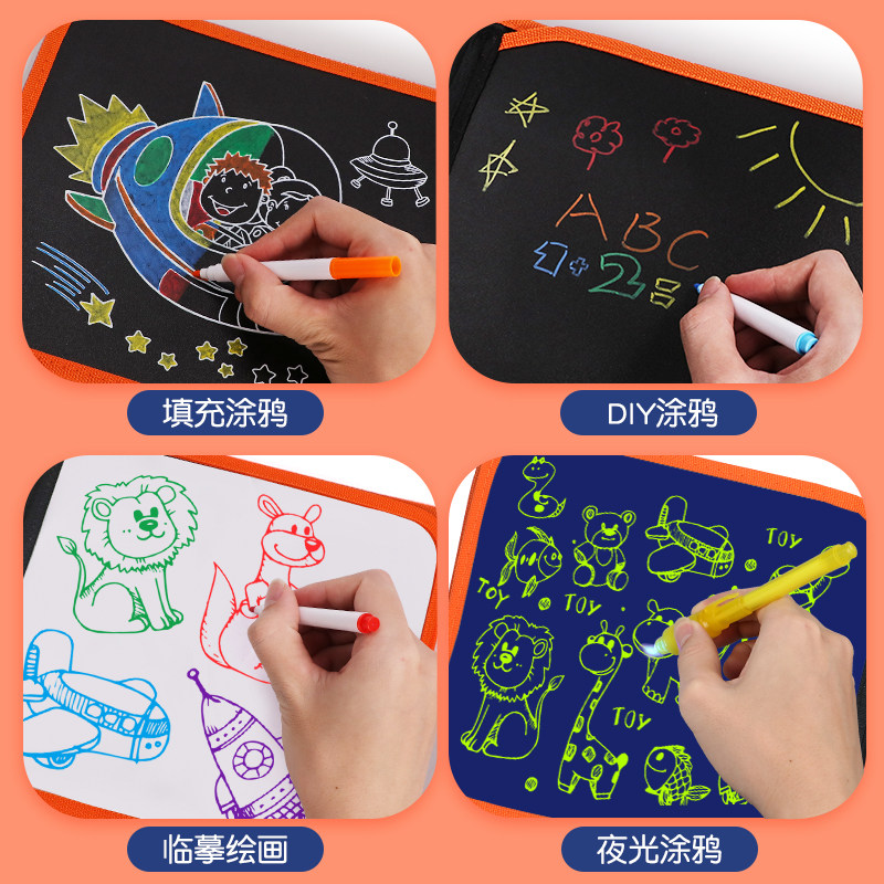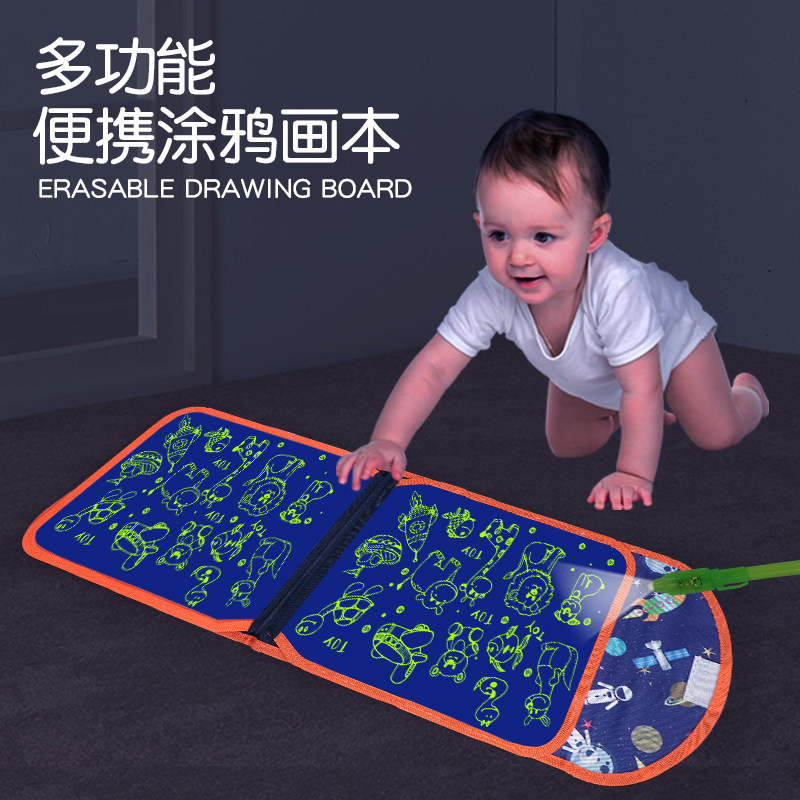 Children's erasable luminous folding picture book graffiti writing small blackboard portable double-sided hand-painted children's toys