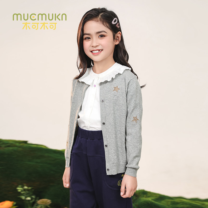 Wood Can College Style Wind Girl Embroidery Stars Knit Cardiovert Sweatshirt Foreign Pie Sweet and large outside wearing a sanitary coat for autumn and winter