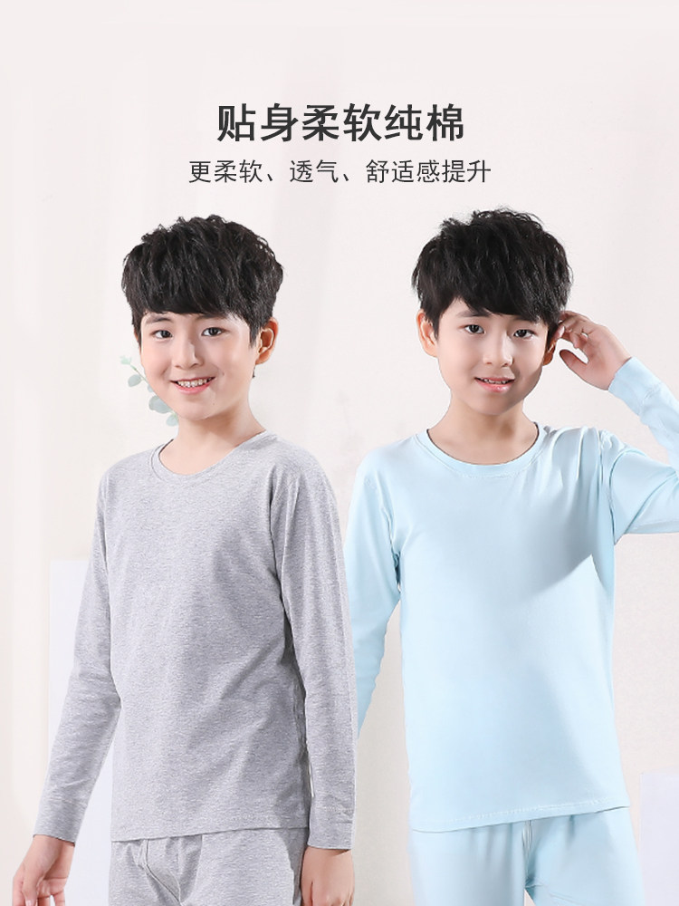 Boys' autumn clothes one-piece tops wear pure cotton middle and big children's student underwear spring and autumn thin bottoming children's long-sleeved t-shirts