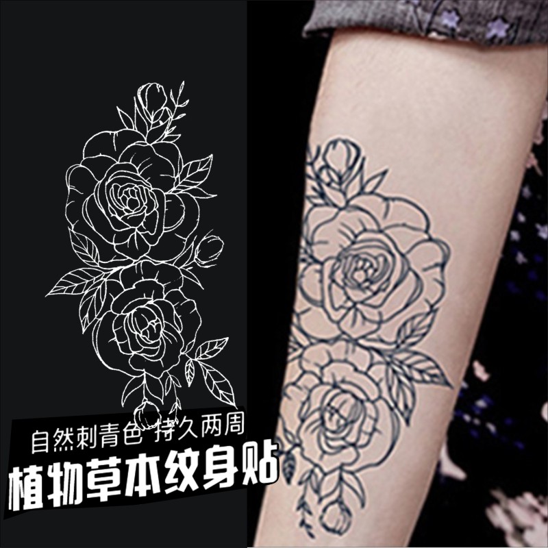 Juice Herb Ben Persistent Retro Black And White Flowers Leaf Hand Back Wrist Arm Tattoo Patch Waterproof Plant Semi Permanent