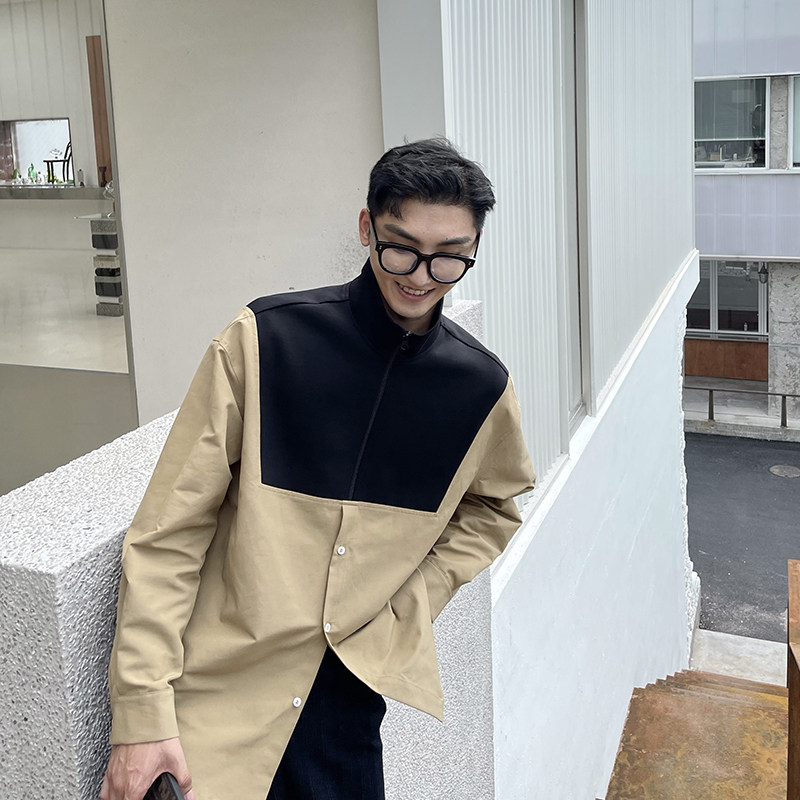 JY Light Cooked Wearing lap Splicing Shirt Man 2022 Chunqiu New Collision Color Design Sensation Small Crowd Casual Long Sleeve Shirt