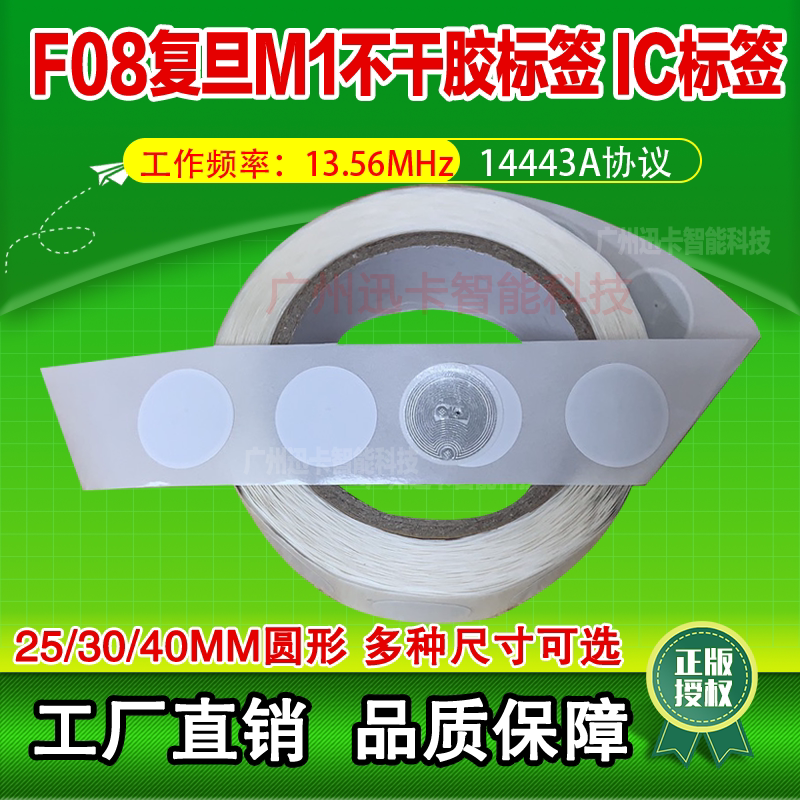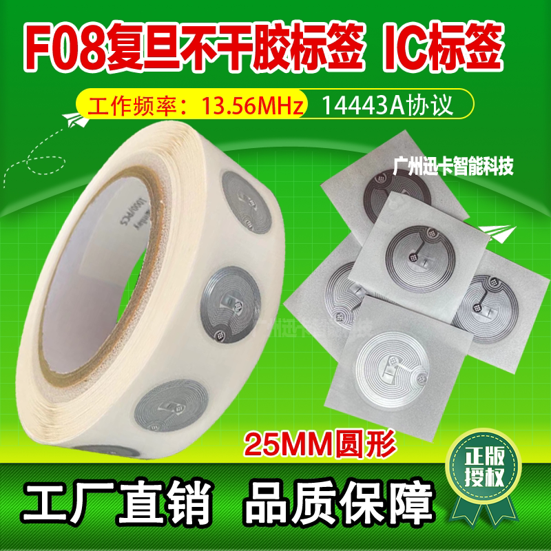 rfid electronic tag Fudan F08 chip 14443A Protocol 13 56MHz self-adhesive tag UID replicable