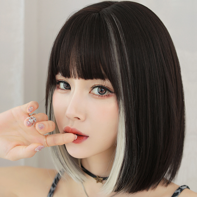 Ear Hanging Dyeing Wig Short Hair Women's Summer Full Headgear Simulation Picking Dye Chemotherapy After Chemo Lady Lock Bone Hair Wave Head Round Face