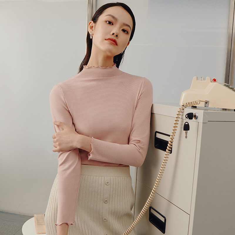 Triple Lance Lingerie Official Flagship Store Officer Net Undershirt Woman's Shuang Glide Small High Collar Underwear Warm Blouse 23550A0