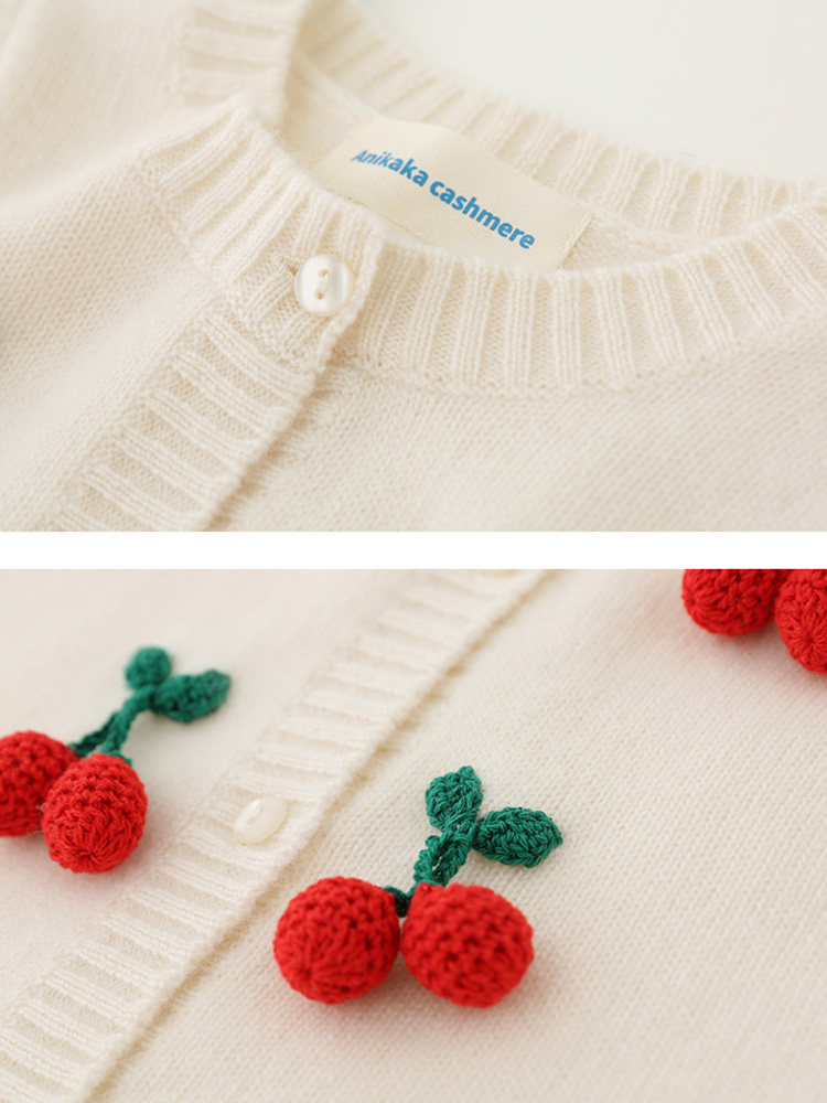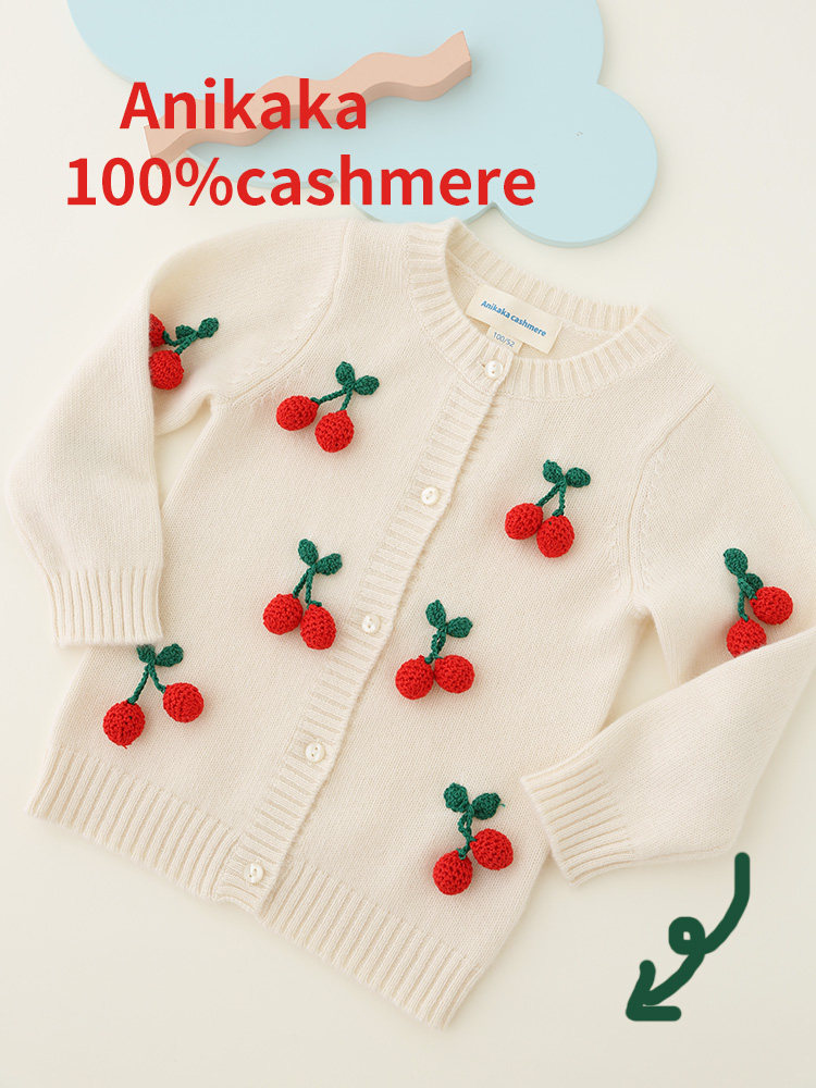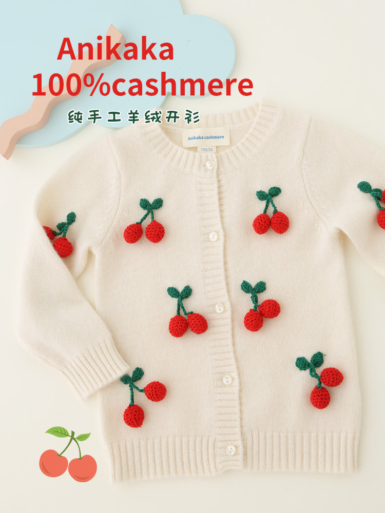 Kids Handmade Cherry Baby Sweater 2022 Spring and Autumn New Girl Pure Cashmere Leggings Kids Knit Cardigan