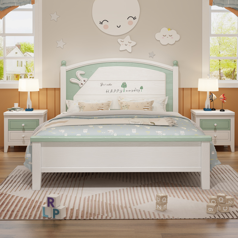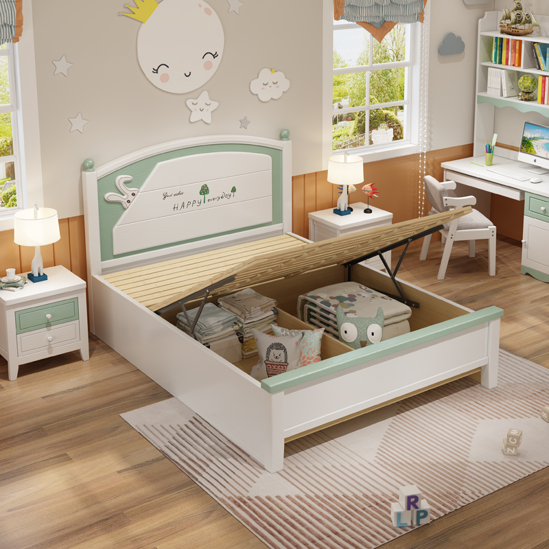 Solid wood children's bed single bed girl cute rabbit princess bed student teenager 1 2 meters 1 5 meters with storage