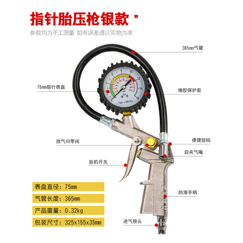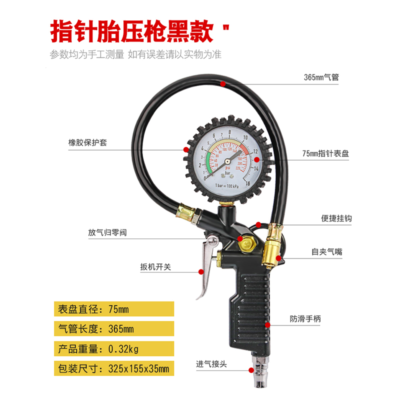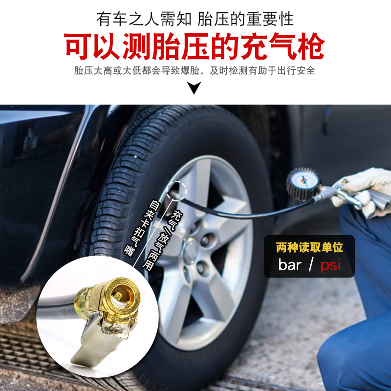 Repair Car Tire Pressure Gauge Gas Tire Pressure Gun Cheer Inflation Watch Inflatable Gun Piezometer Gas Gauge Deflation Tool