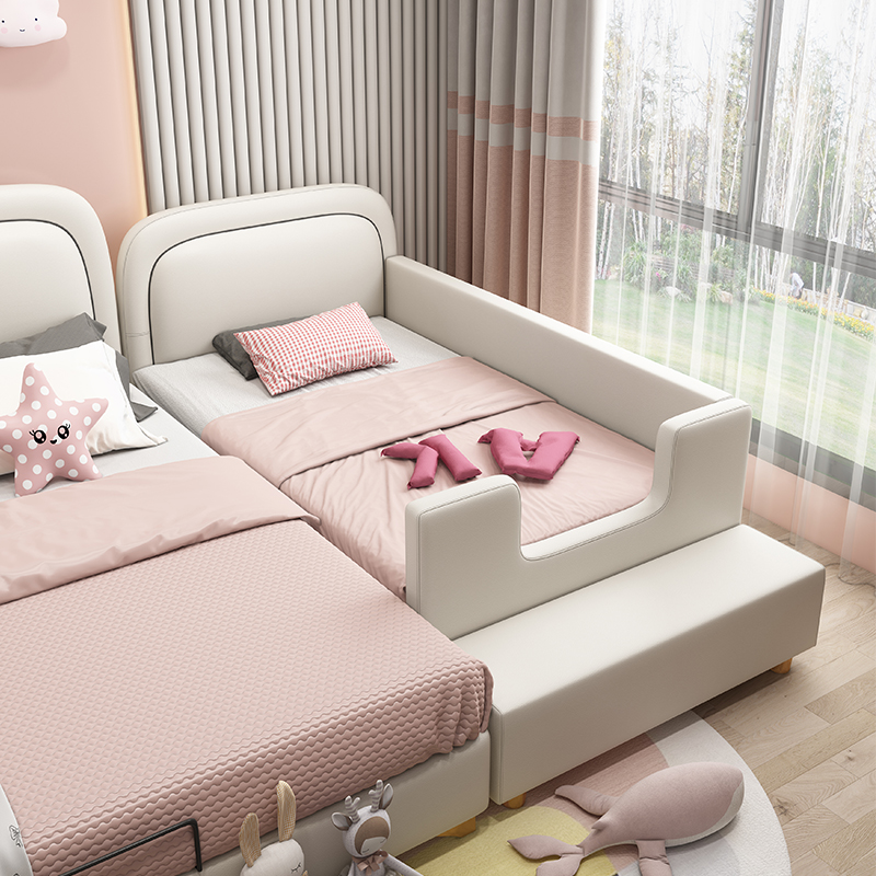 Children's stitching bed with guardrail girl princess bed widened bed simple baby soft bag small bed adult side bed