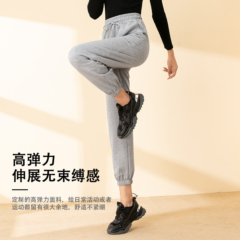 Big Code Women Pants Fat mm200 Catty Loose Pure Cotton Elastic Spring Autumn Season Display Slim Movement Harun High Waist Casual Pants Woman