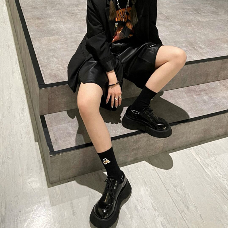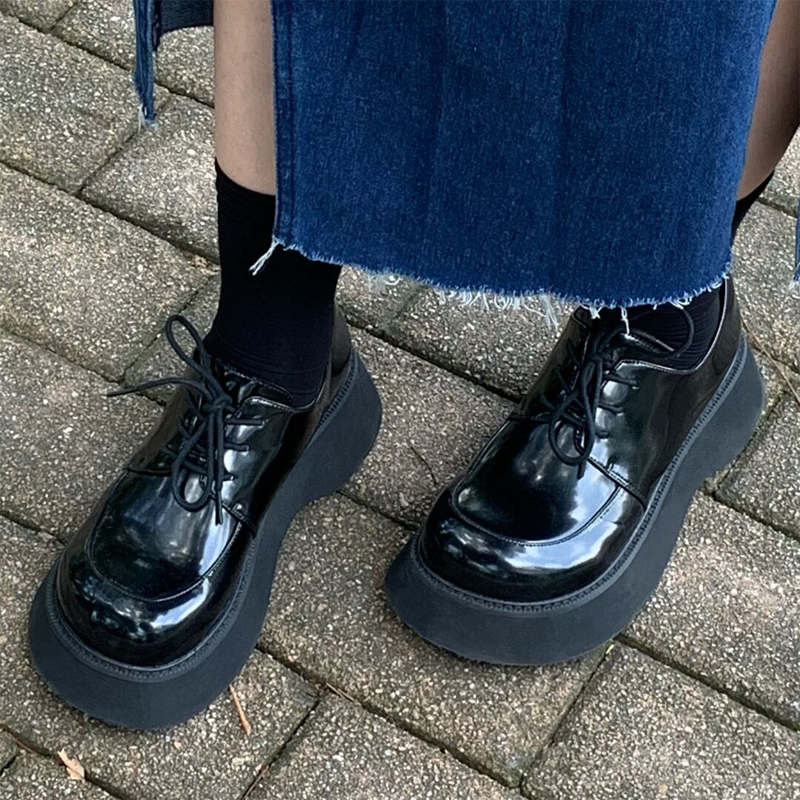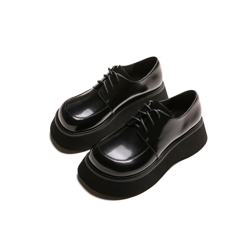 Small leather shoes women's autumn and winter thick-soled 2022 round-toe lace-up flat-bottomed platform shoes with heightened black Mary Jane shoes