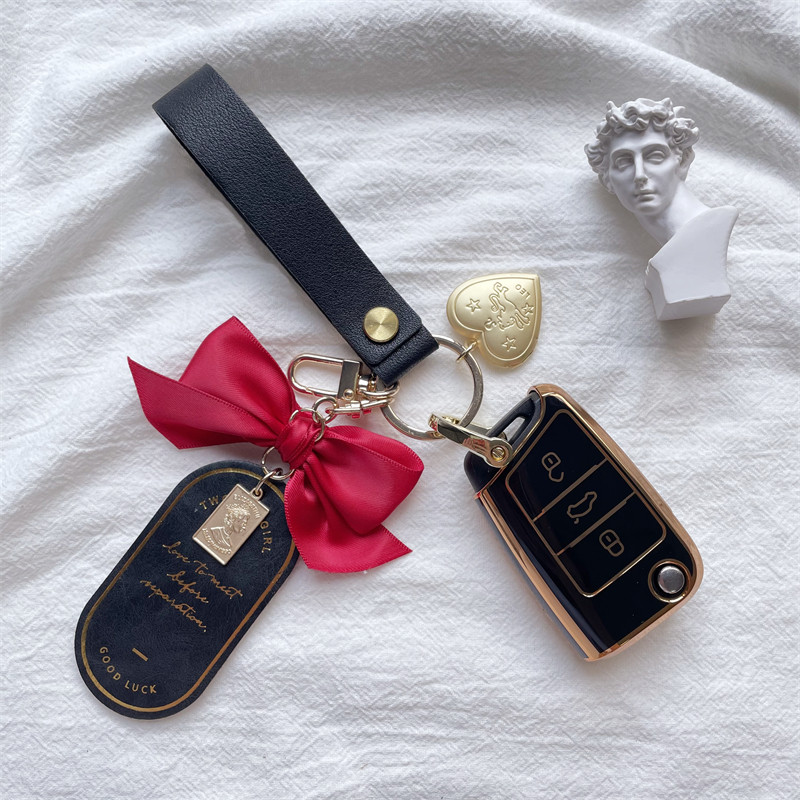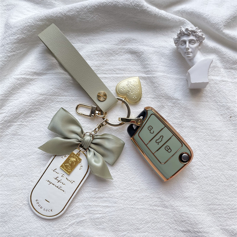 Foss B model with gold edge white Love pearl chain Foss model B with gold edge white Pink leather bow Foss model B gold edge light green white and green leather bow Foss model B gold edge black black leather bow