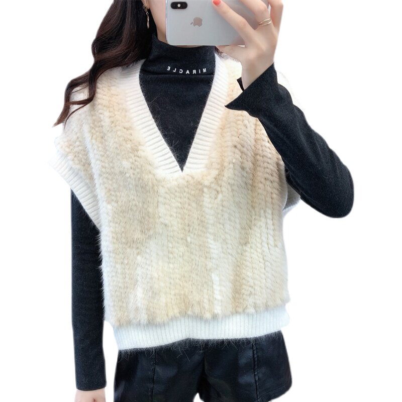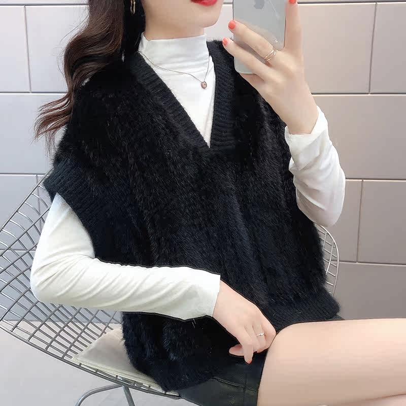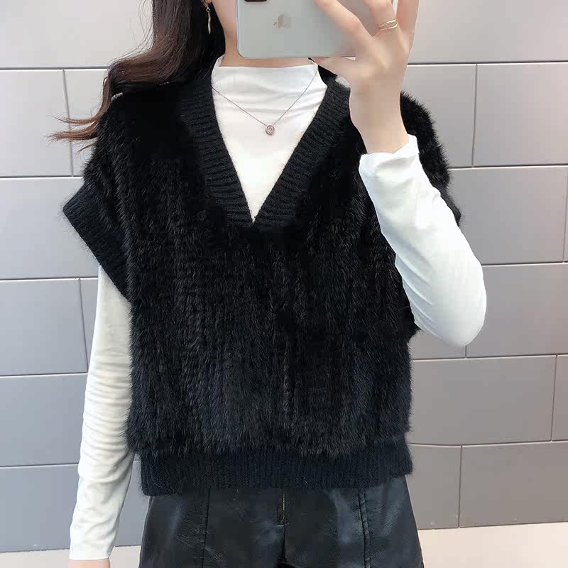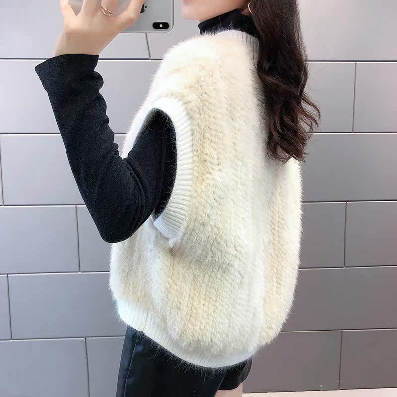 2021 autumn and winter new mink fur whole mink woven short mink fur coat waistcoat slim waistcoat fur coat women