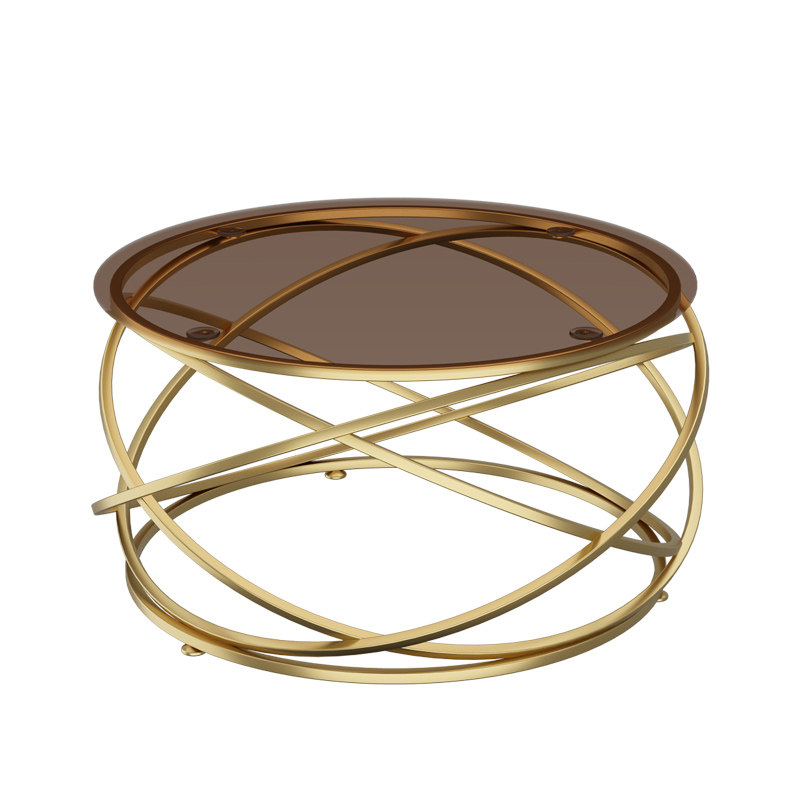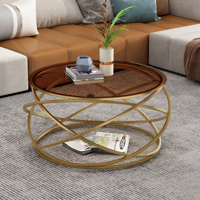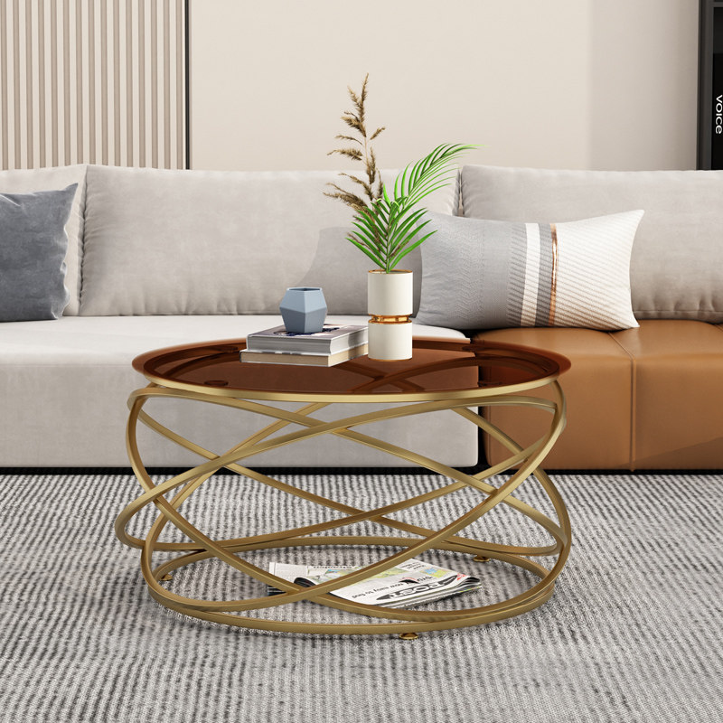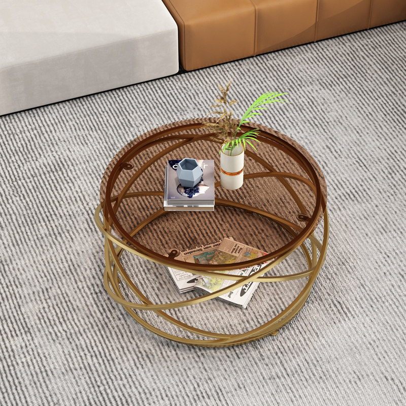 Light luxury modern coffee table simple Nordic small apartment brown tempered glass round creative table design furniture