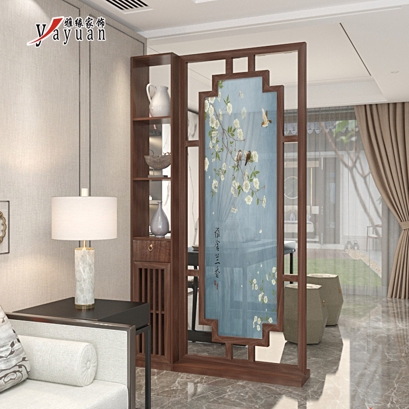 New Chinese screen partition room entrance to obscure office solid wood grille entry into the door to the door of the door partition cabinet screen wall