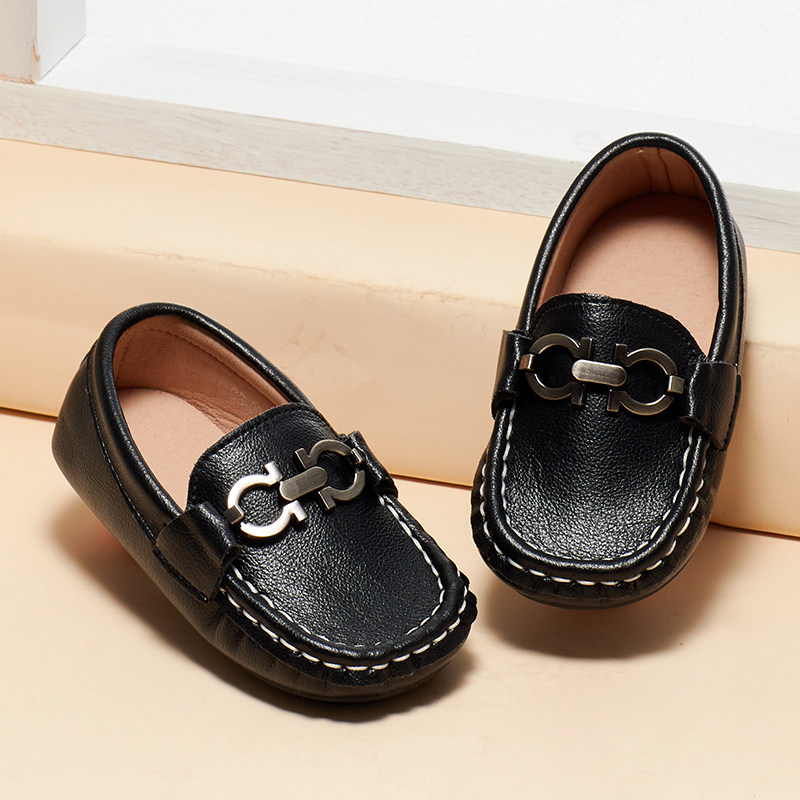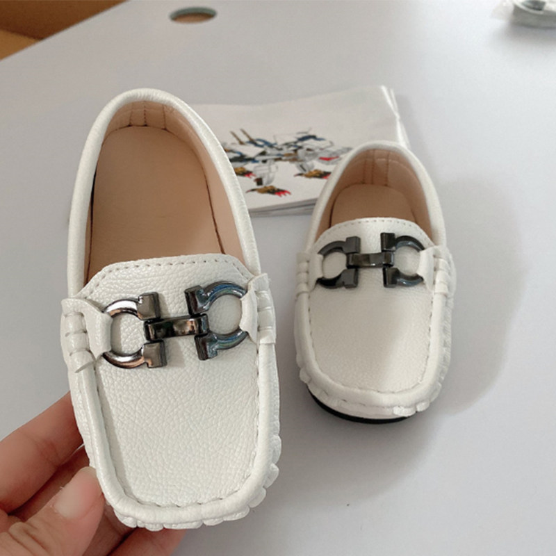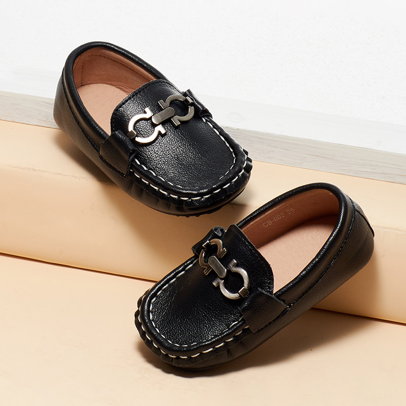 Fashion British children's 2022 spring and autumn new beanie shoes children's small leather shoes Korean version comfortable warm soft sole shoes