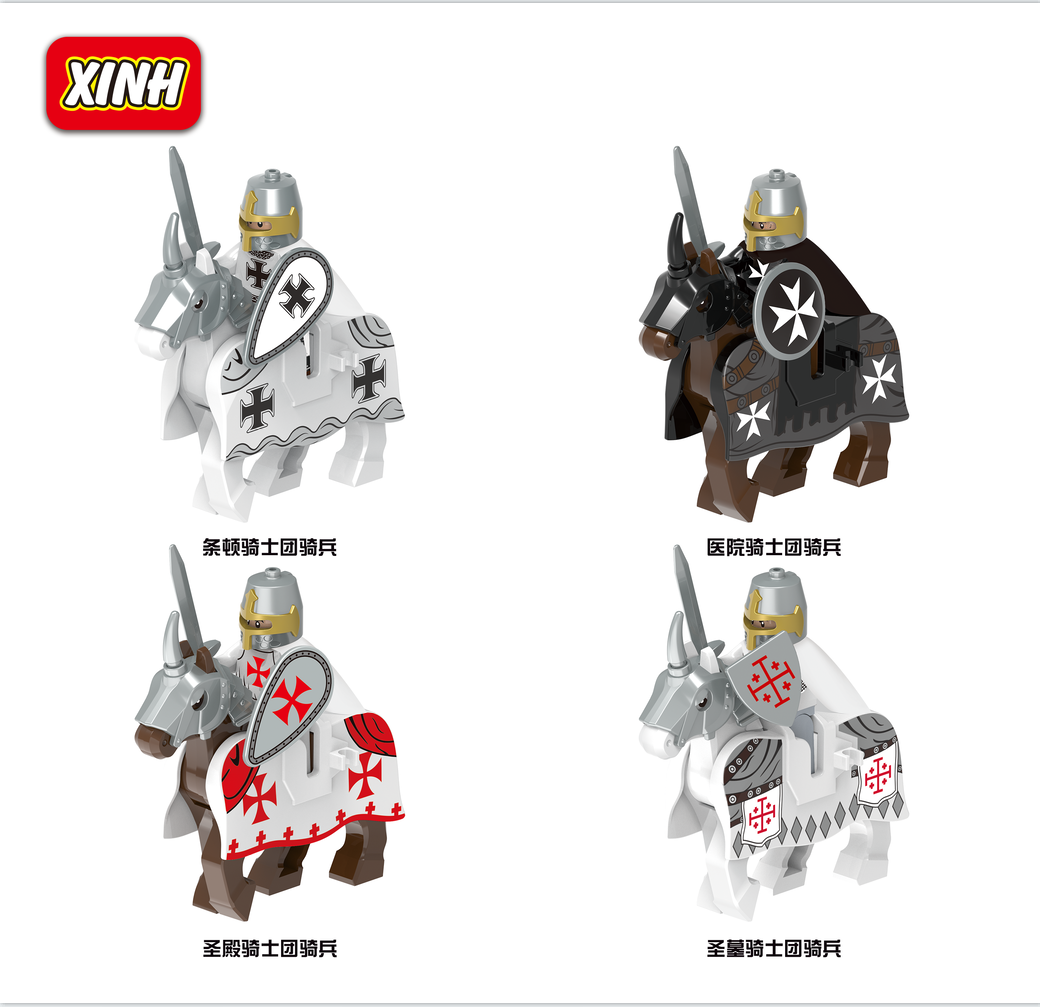 ShinHong X0317 Medieval Teutonic Templar Order of the Holy Sepulchre War Horse Soldier Assembling Building Block Doll Toy