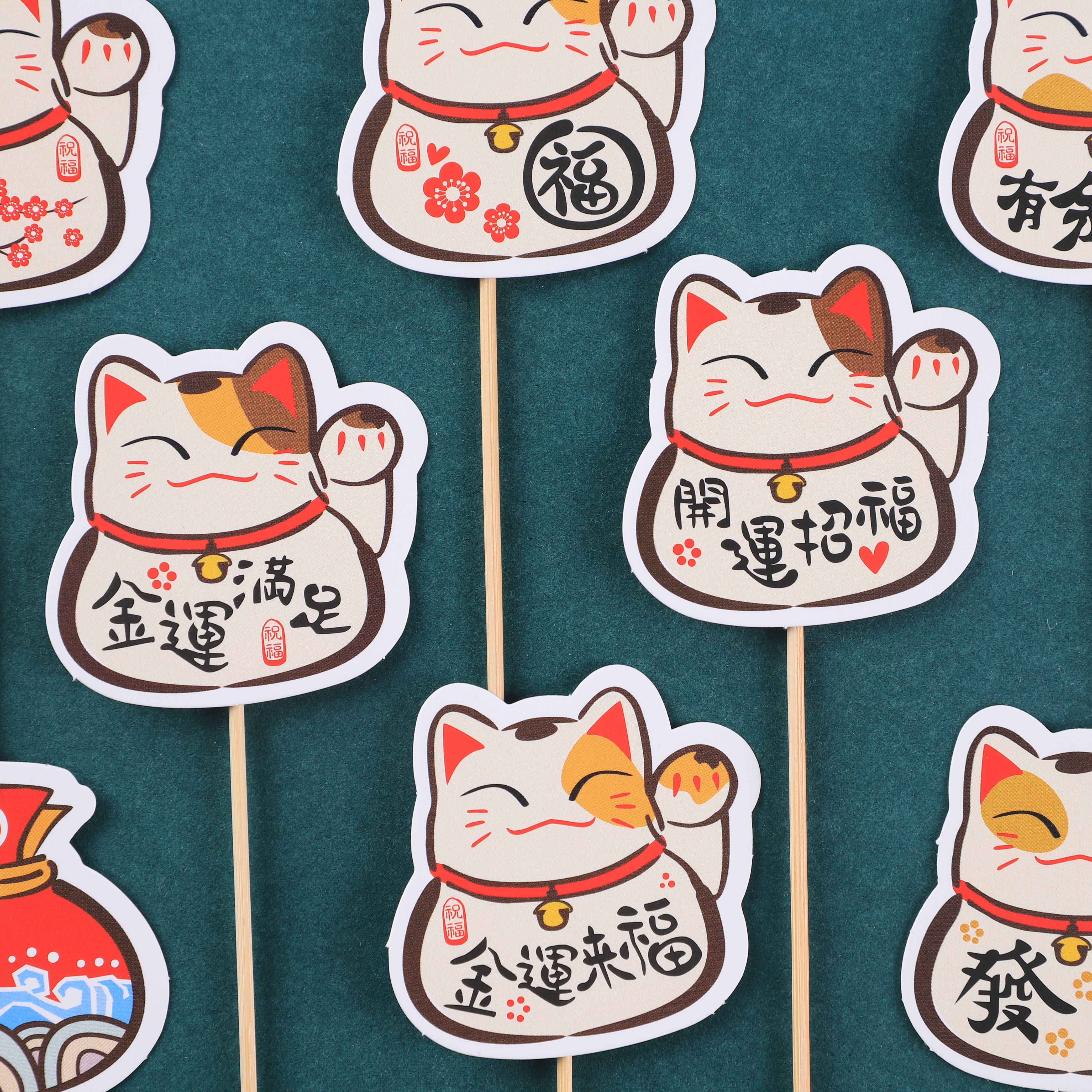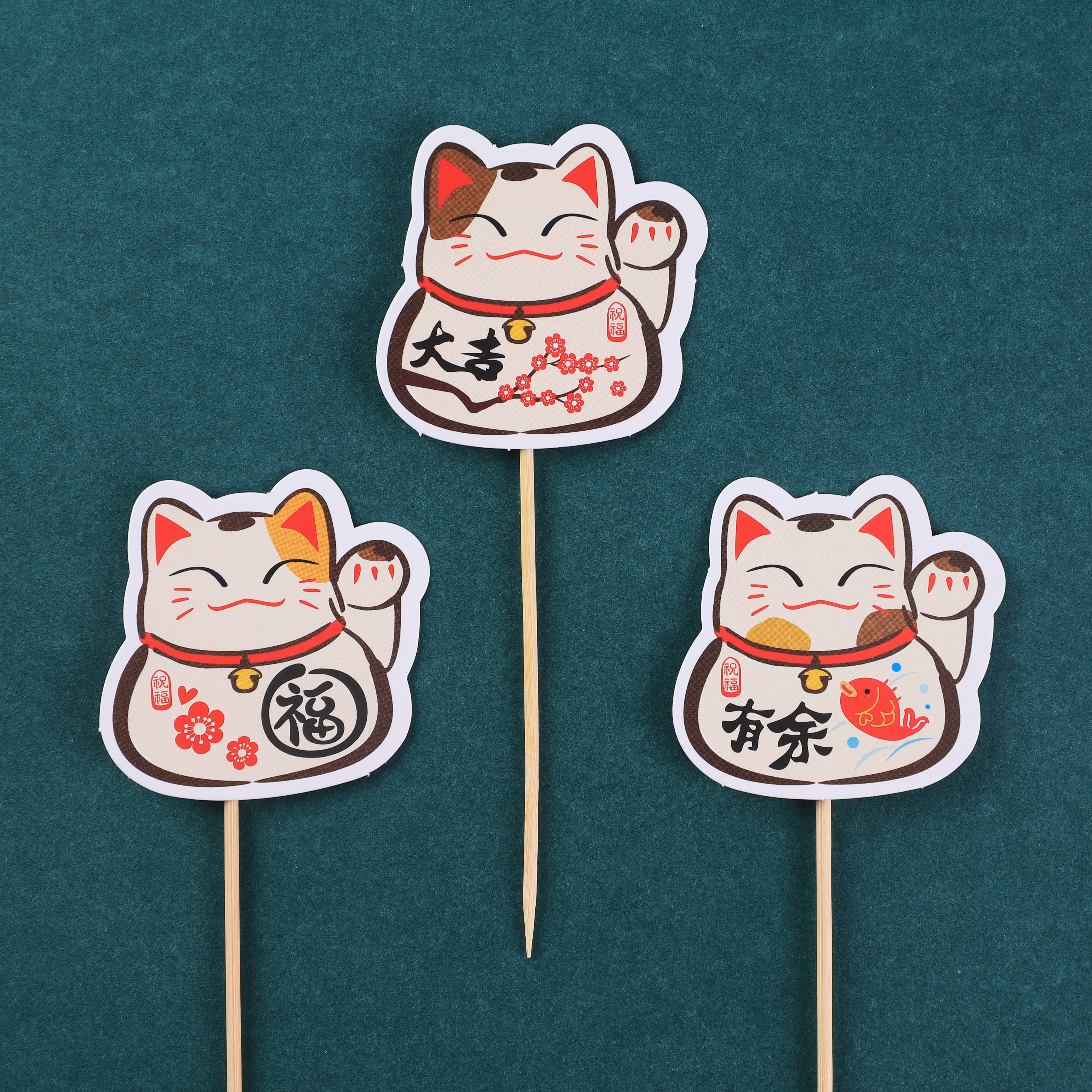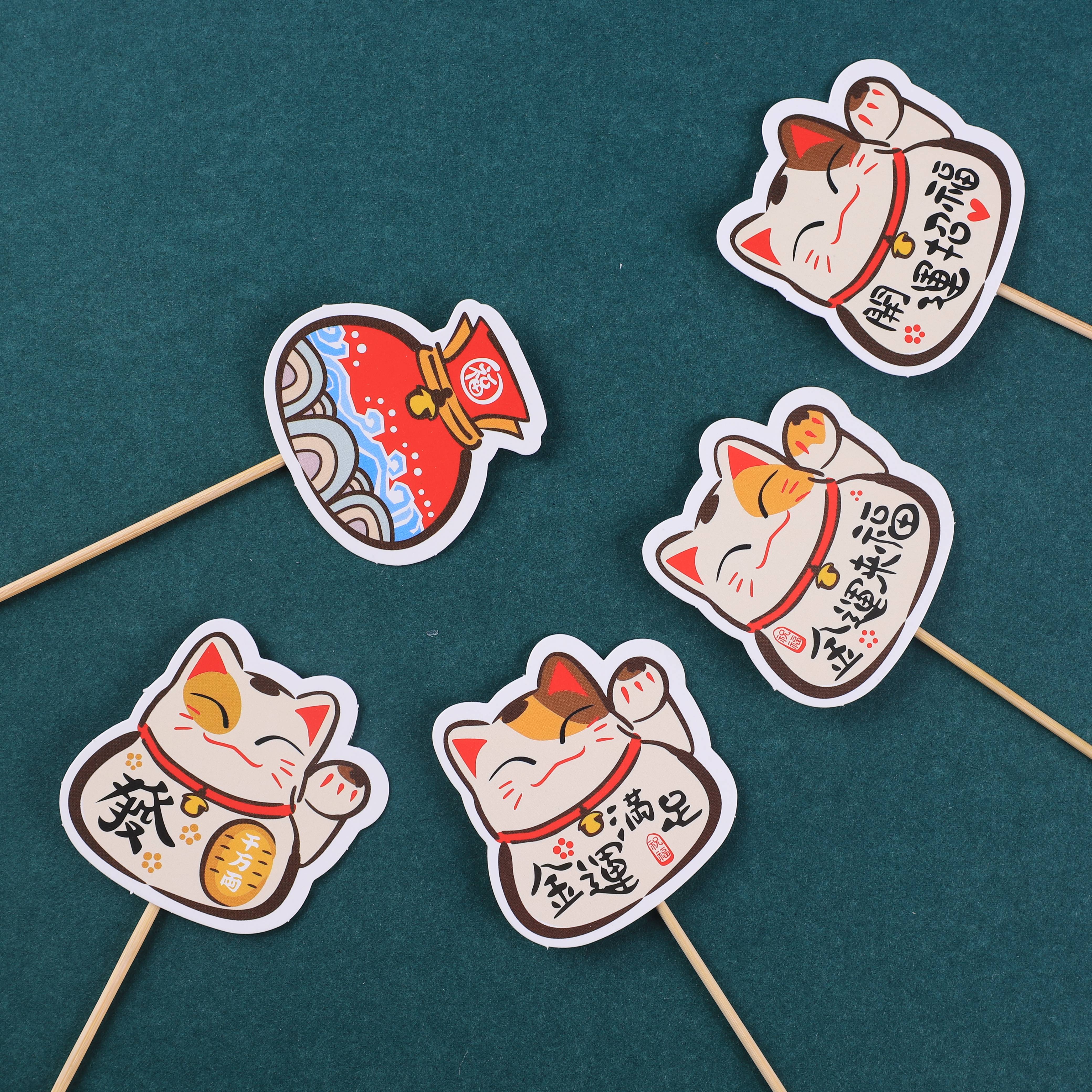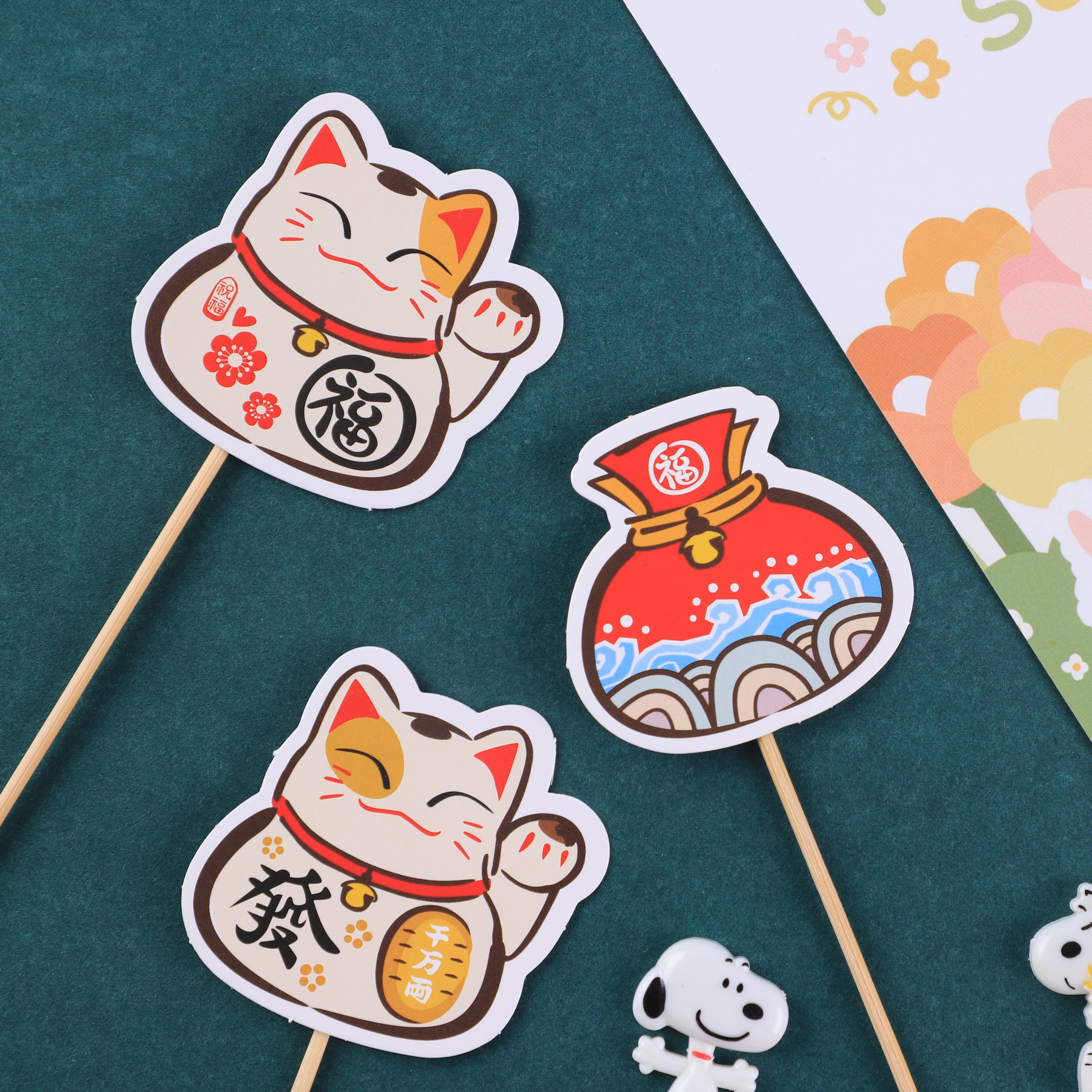 New Year's lucky cat cake card decoration cartoon blessing character year after year