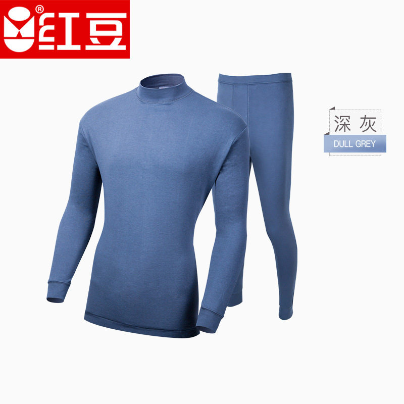 Red bean men's autumn clothes suit middle-aged and elderly middle-aged high-neck low round-neck pure cotton cotton long-sleeved autumn and winter heating clothes