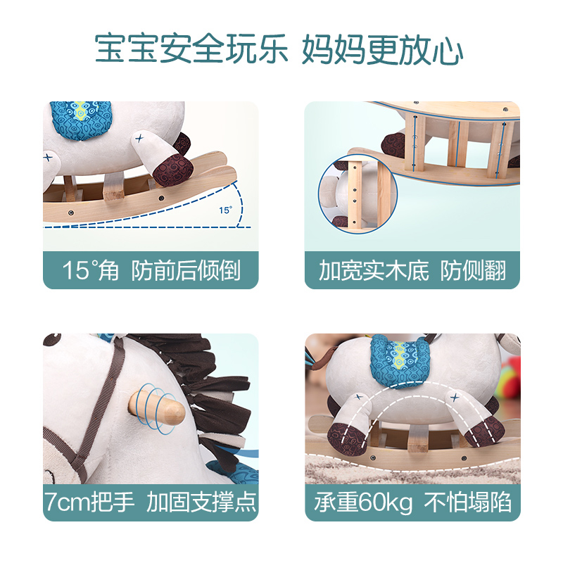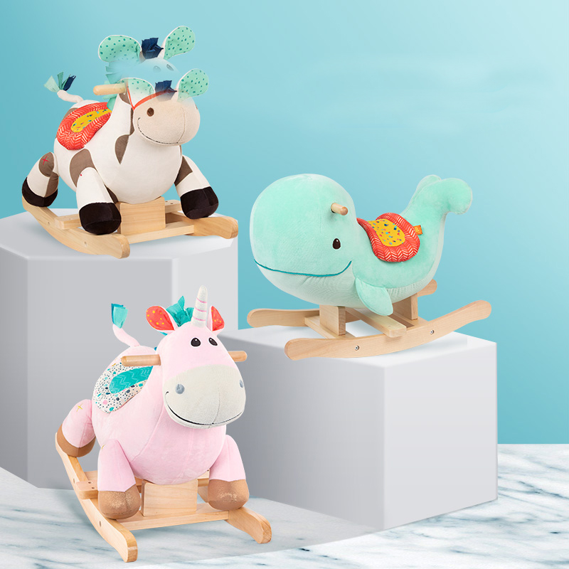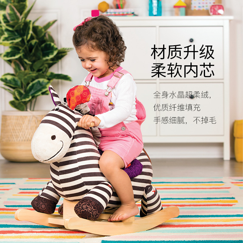 Bile Btoys children rocking horse mummy baby solid wood plush rocking chair Toys for baby riding rocking car-Taobao
